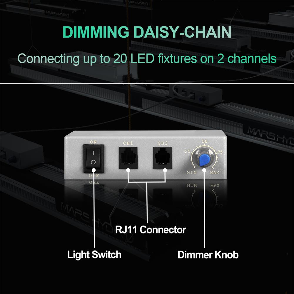 Dimmer knob added, more convenient to adjust the brightness. Up to 15 lights can be daisy-chained and control together on just one light.