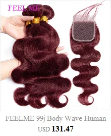 FEELME Peruvian Straight Bundles With Closure #1b Burgundy Ombre Human Hair Bundles With Closure 3 Bundles With Closure RemyHair