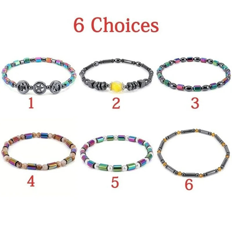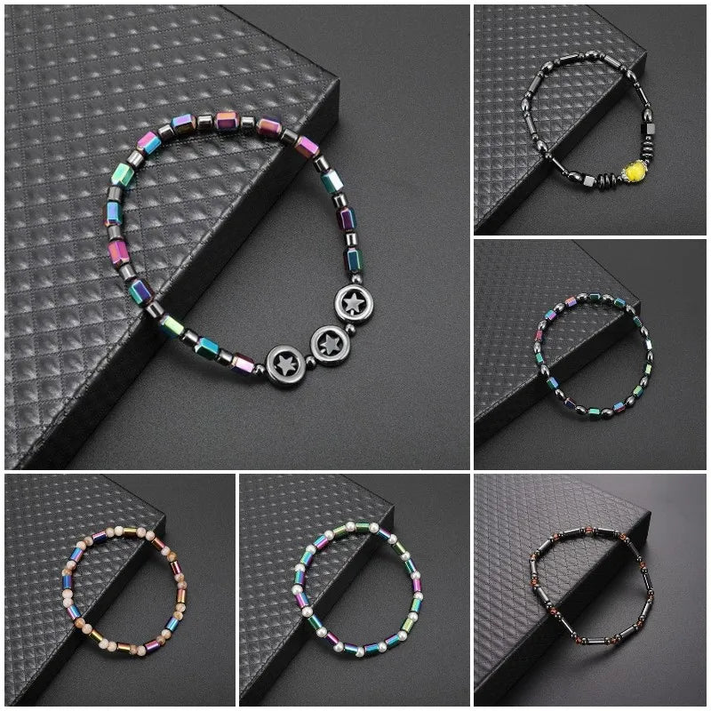 2024 Trendy Weight Loss Magnetic Hematite Round Beads Stretch Anklet Anti-Fatigue Health Care Energy Slimming Anklet Jewelry