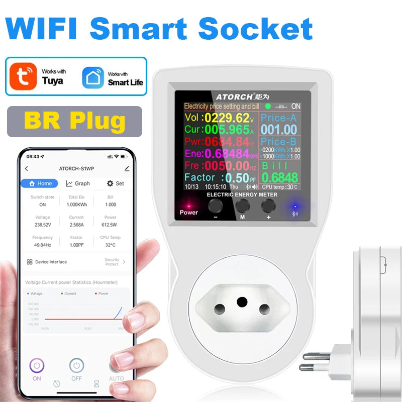 BR Plug Tuya Smart WiFi Socket Digital Current Voltmeter AC Power Meter Time Power Energy Tester Wattmeter US UK AU FR EU Plug