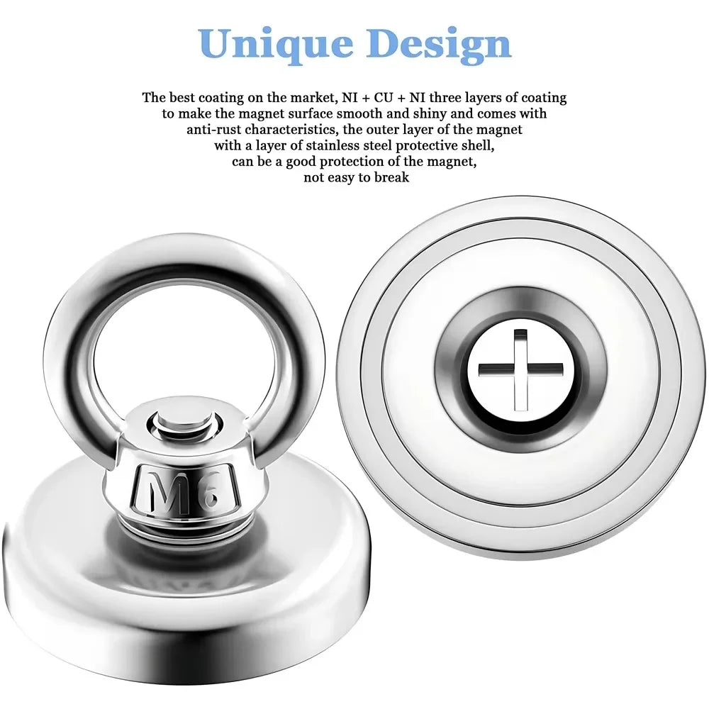 D16~D42mm Super Strong Neodymium Fishing Hook N52 Heavy Duty Rare Earth Neodymium with Countersunk Hole Eyebolt Salvage Magnetic