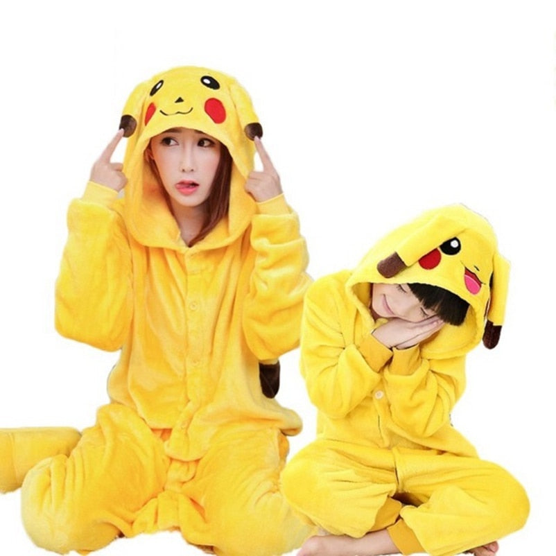Family Halloween Cosplay Costume Animal Yellow Anime Pajamas Winter Warm Cartoon Sleepwear Matching Outfits Mother Kids Onesie