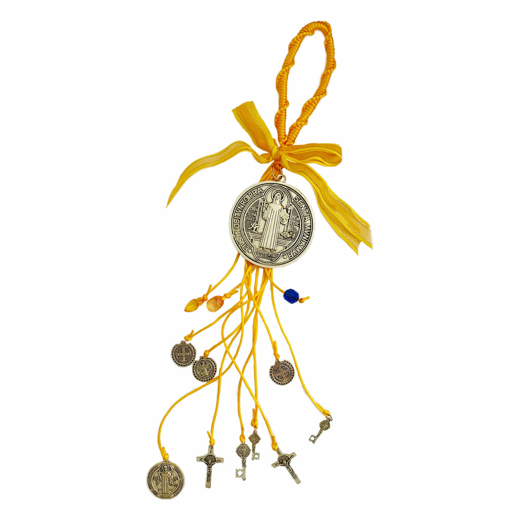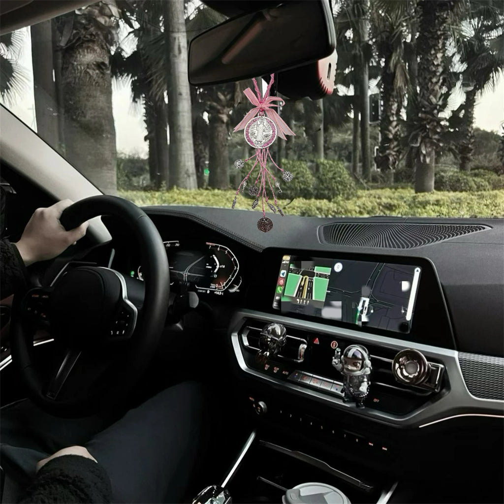 Saint Benedict Medal Protection Blessing Charm Pink Enamel Double Side Catholic San Benito Medalla Cross Charm Handmade Easter Day's Gift Car Hanging Charm for Men Women