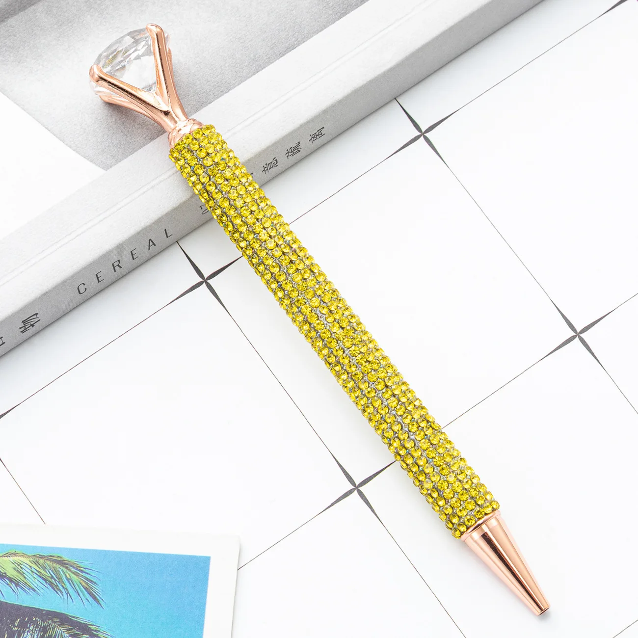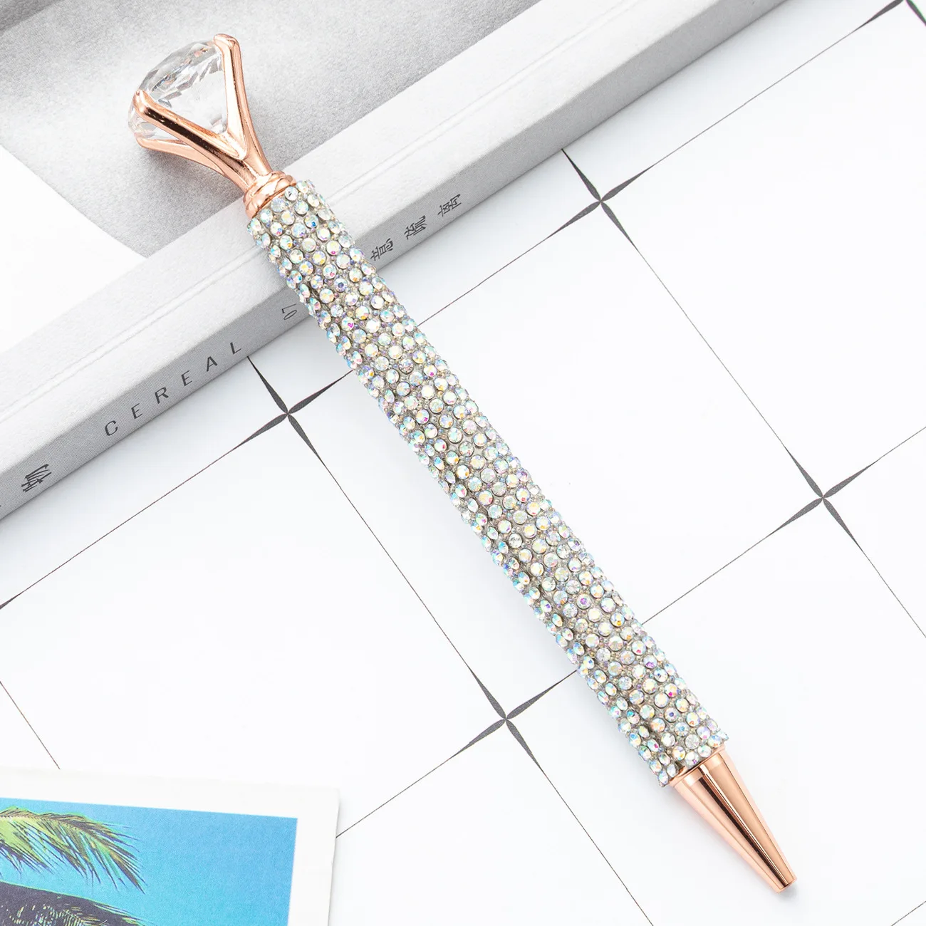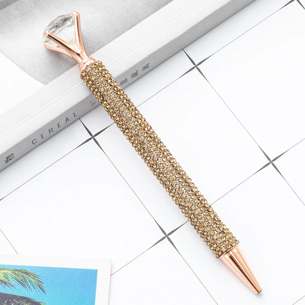 1 Piece Lytwtw's Ballpoint Pen Luxury Gold Big Diamond Wedding Rose Metal Stationery School Supply High Quality Pen