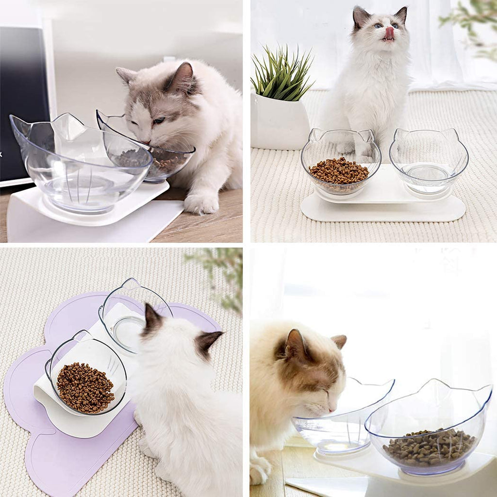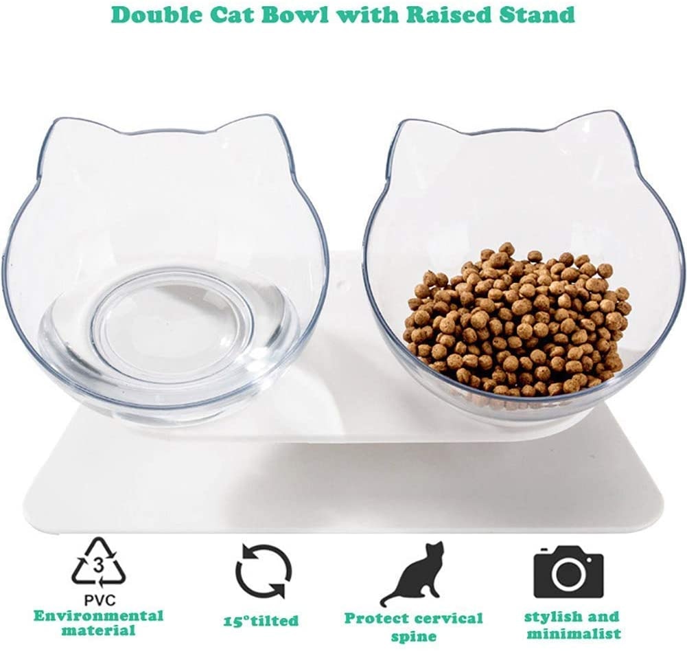 Non-Slip Cat Bowl Transparent Durable Pet Double Bowls With Raised Stand For Cats Dog Food Feeder Drink Water Bowl Pets Supplies