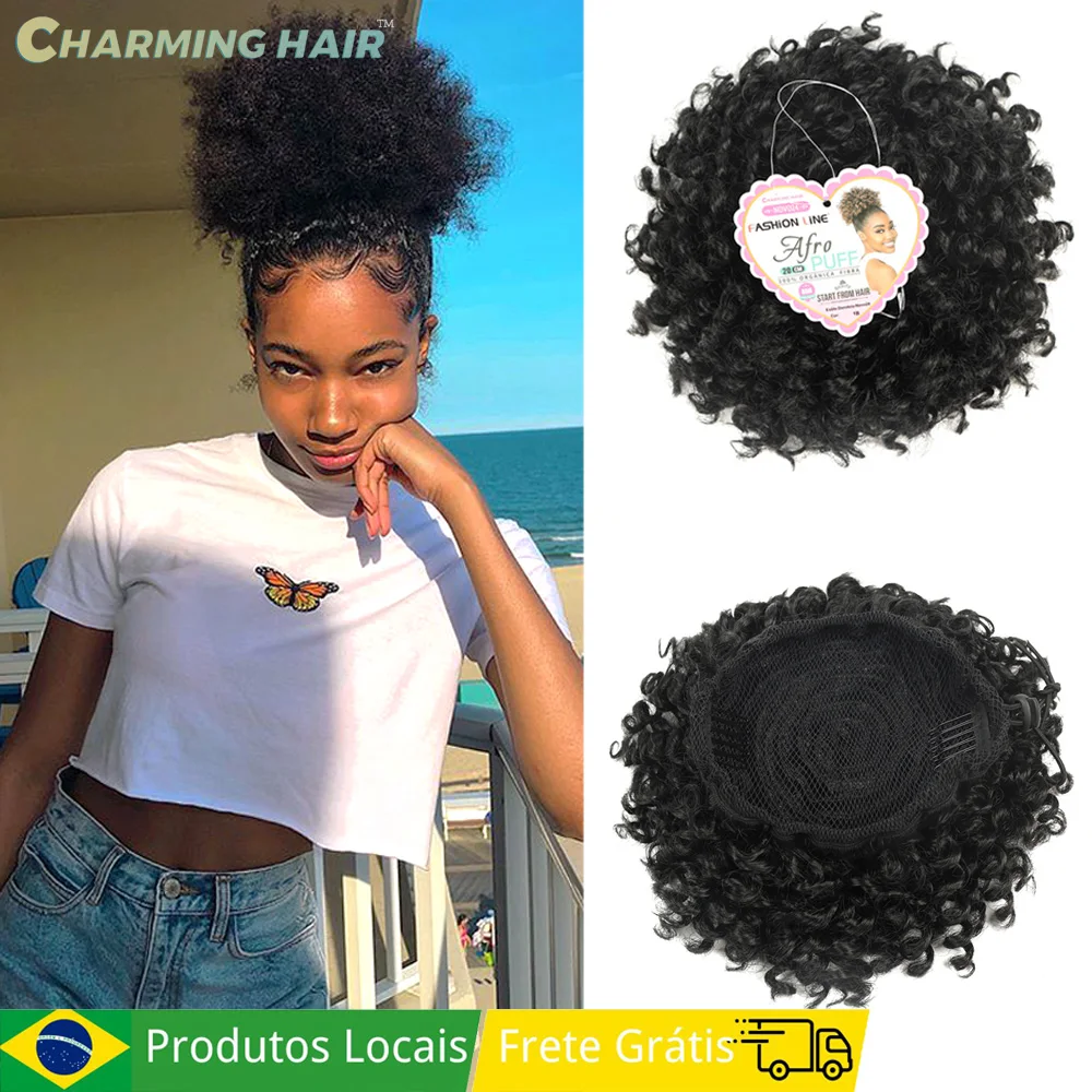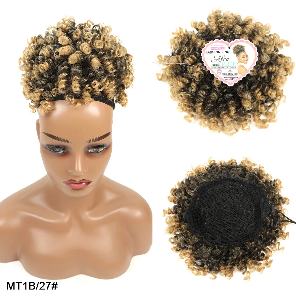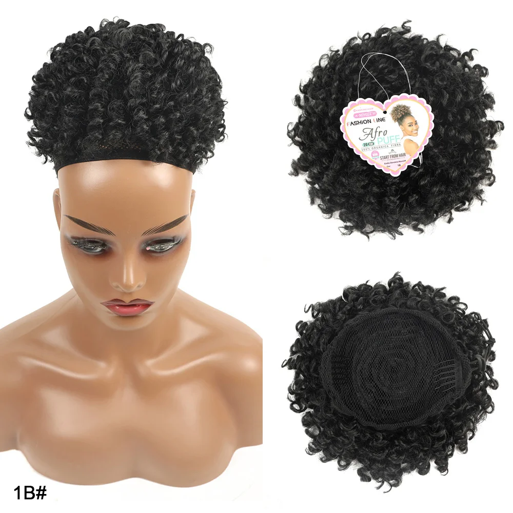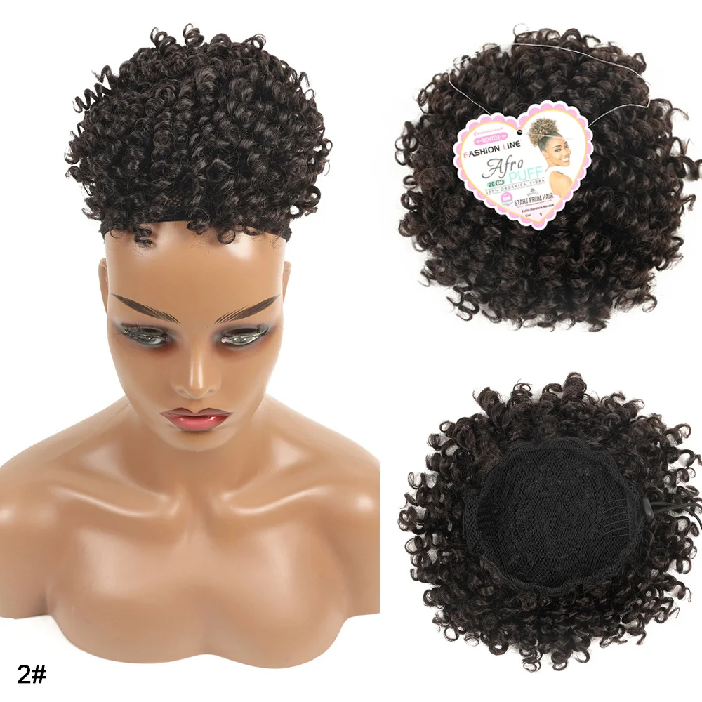 Estilo do cabelo:Rabo de cavalo Afro Puff,SintéticoRabo de cavalo com cordão,2 clipes para consertar.