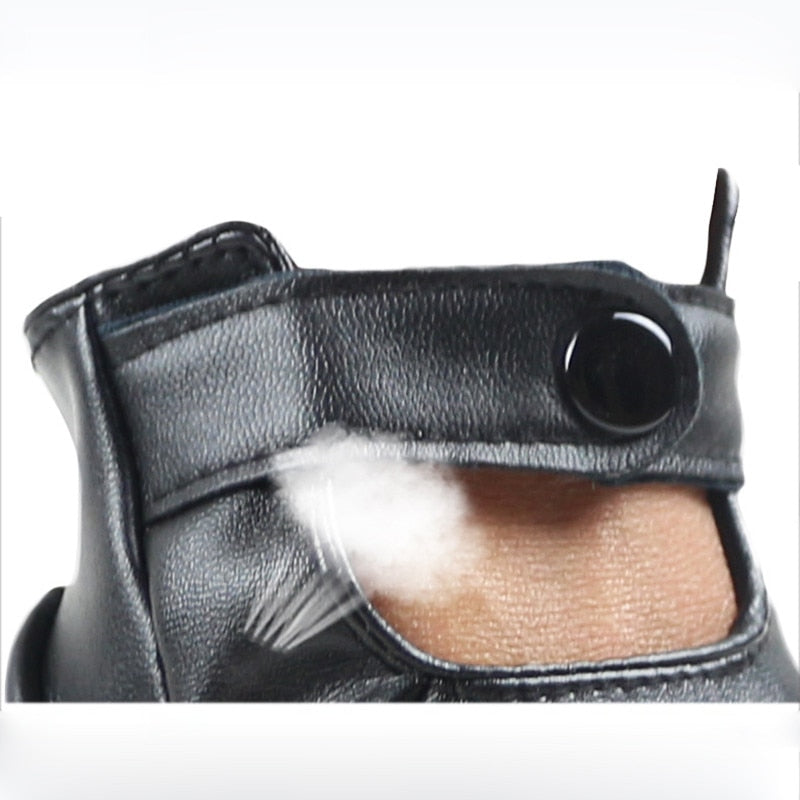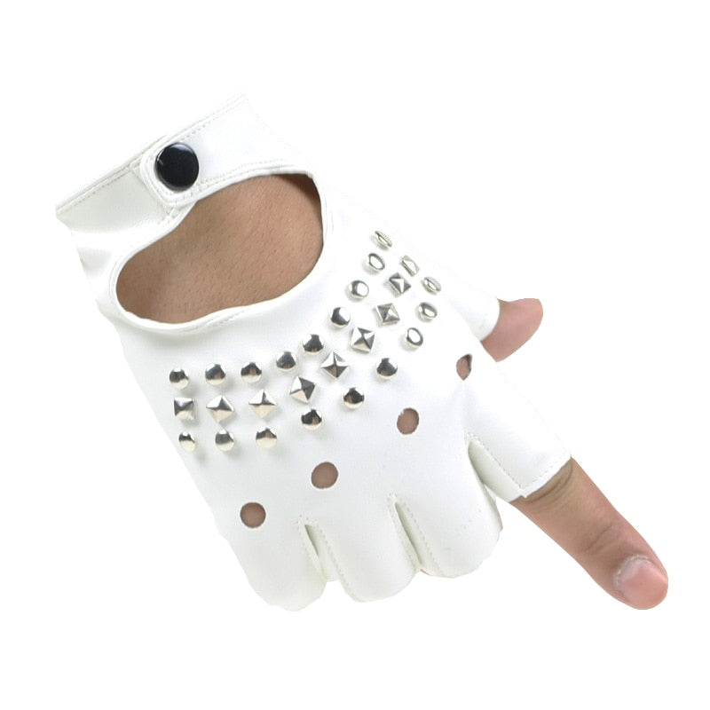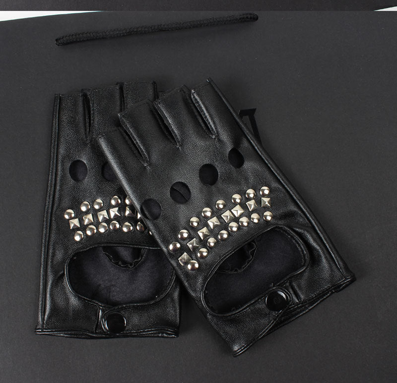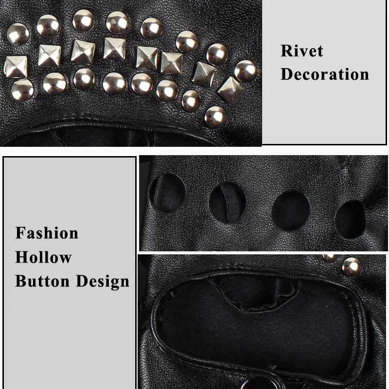 2019 Fashion Half Finger Gloves Women PU Leather Fingerless Driving Gloves Rivet Hollow Dancing Guante For Men Black white Luvas