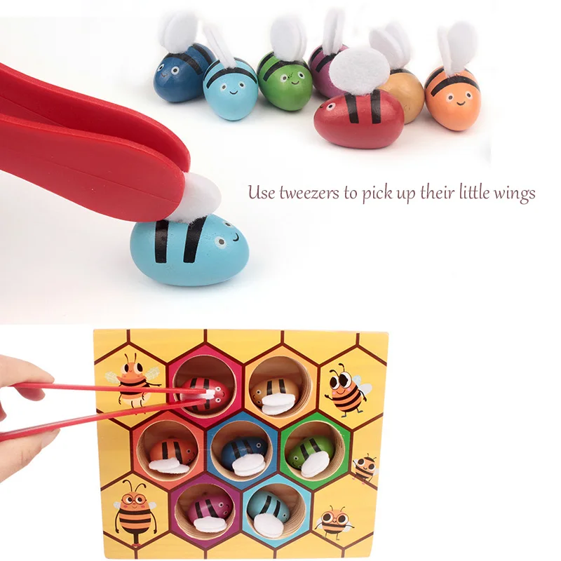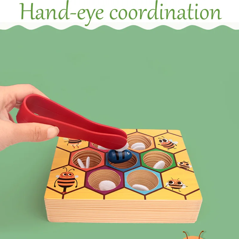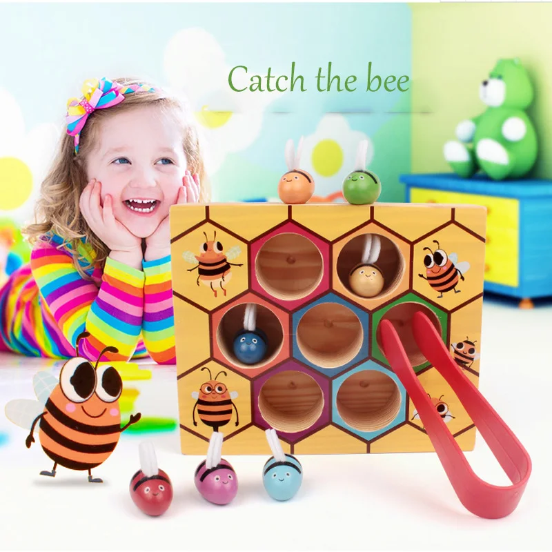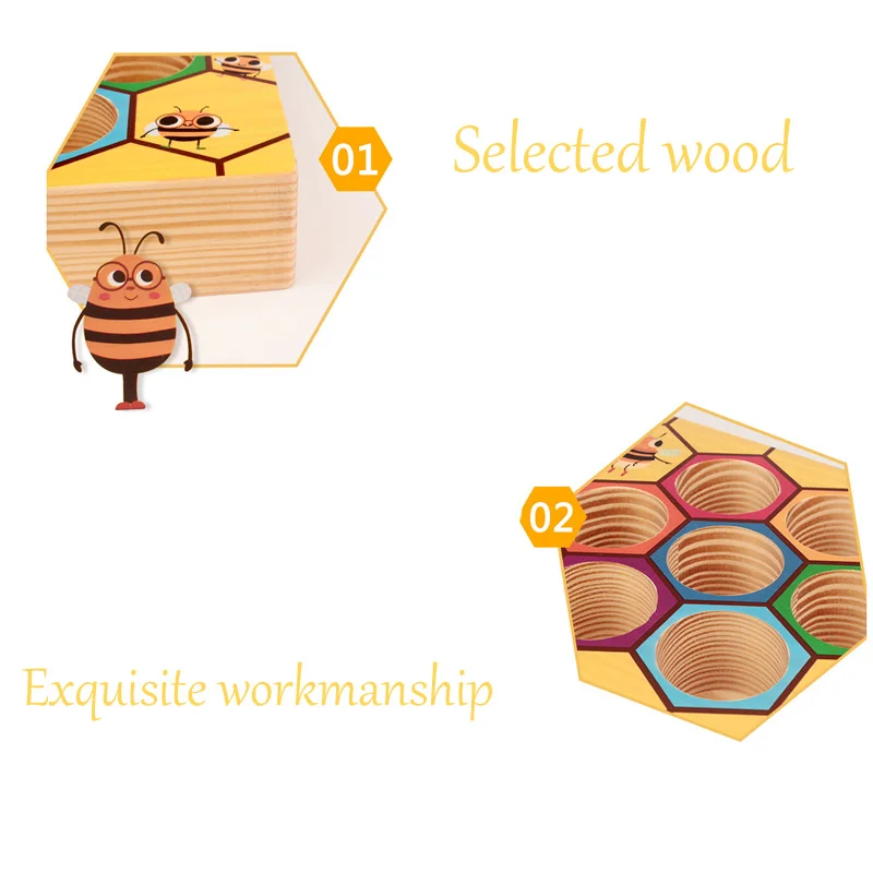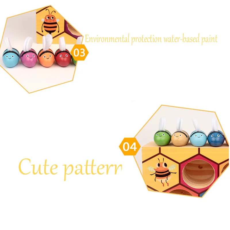 Children Montessori Early Education Beehive Game Industrious Little Bees Kids Wooden Toys Childhood Color Cognitive toys
