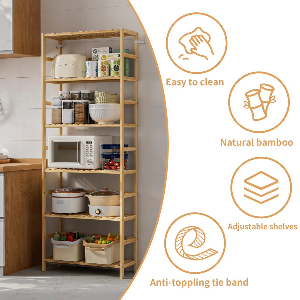 Freestanding Bamboo Bookcase Storage Shelf 6-Tier Bathroom Kitchen Shelving Unit Rack Organizer