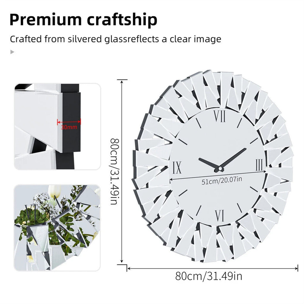 Creative rising sun stereoscopic mirror clock perfectly decorates your living room, bedroom, corridor, restaurant, office, hotel, and is a gift for a housewarming party or special day. The irregular mirror veneer process increases the layering and three-dimensional visual sense of the wall.