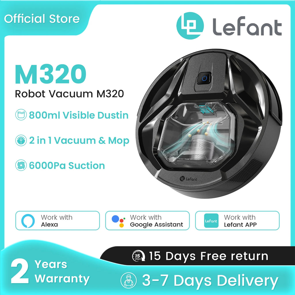 Lefant M320 cordless Robot Vacuum Cleaner and mop, 6000Pa ,210 Mins Runtime,Self-Charging,Ideal for Hard Floor, Pet Hair,Carpet