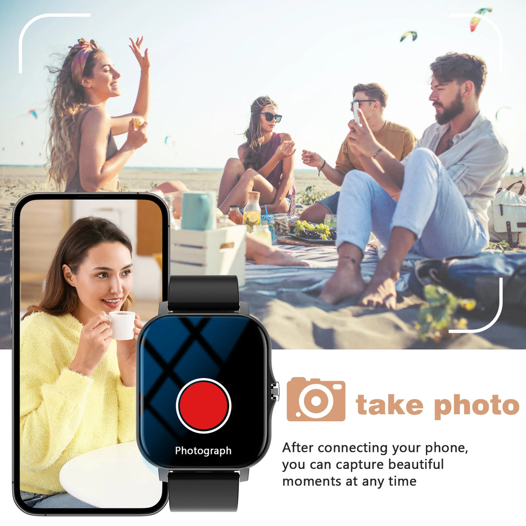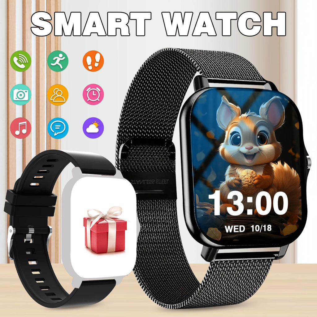 The smart watch is equipped with a full touch screen and has various functions such as call and message reminders. Universal spo