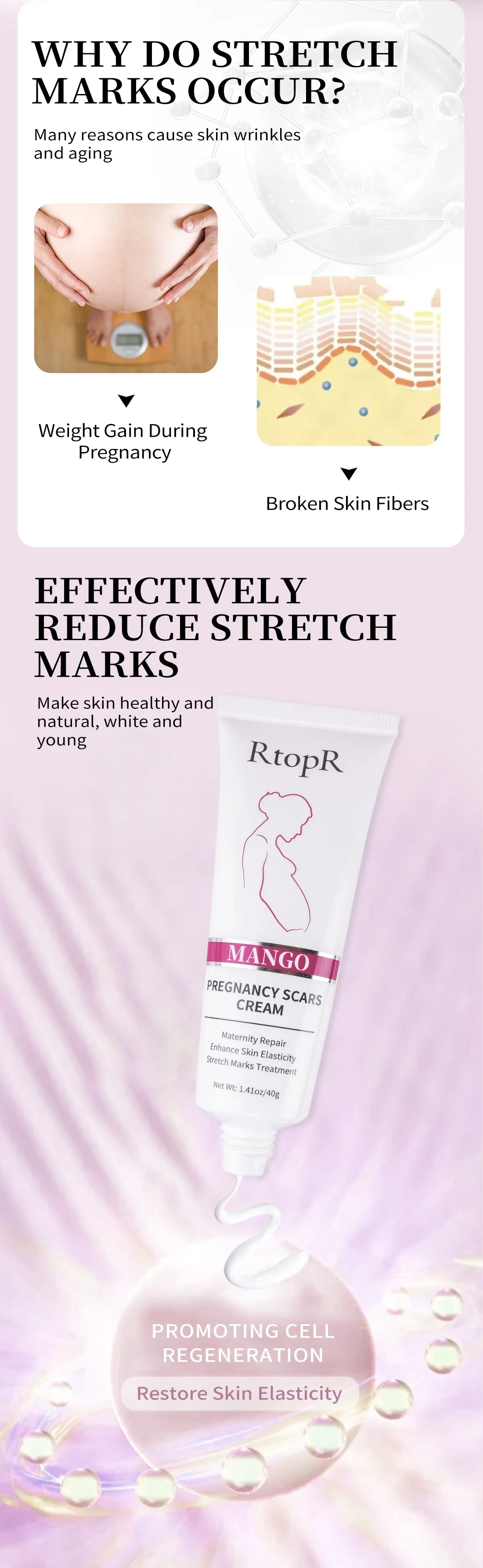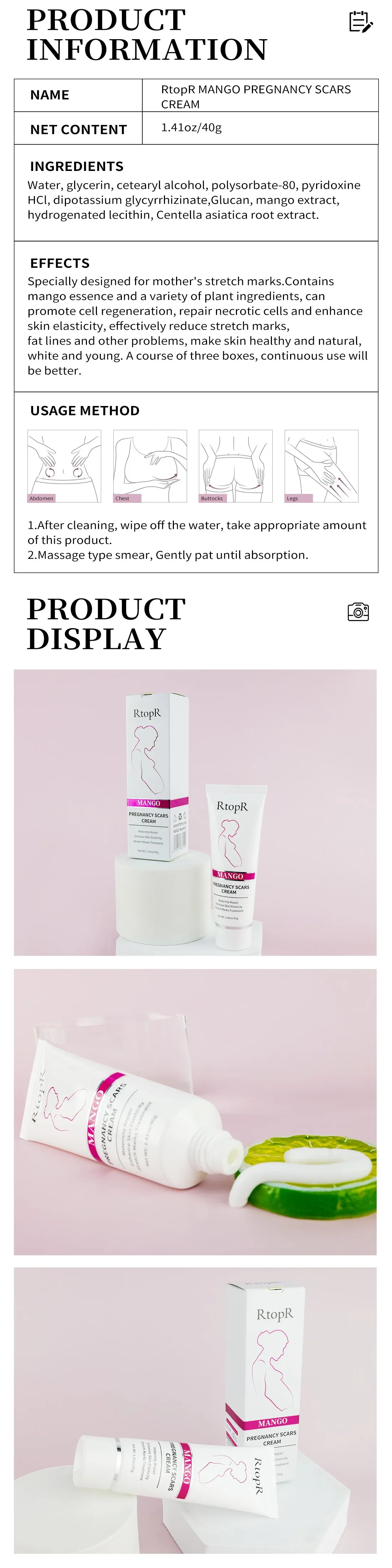 5pcs RtopR Mango Improves Skin Reduces Wrinkles Remove Skin Scars Treatments Pregnant Women Skin Cream Increases Skin Elasticity