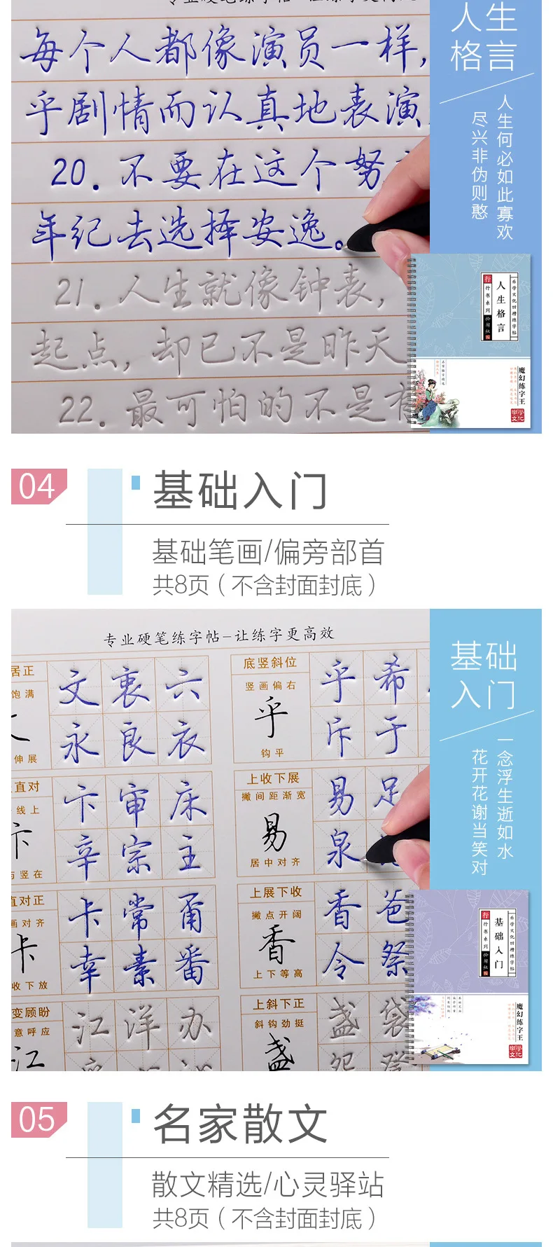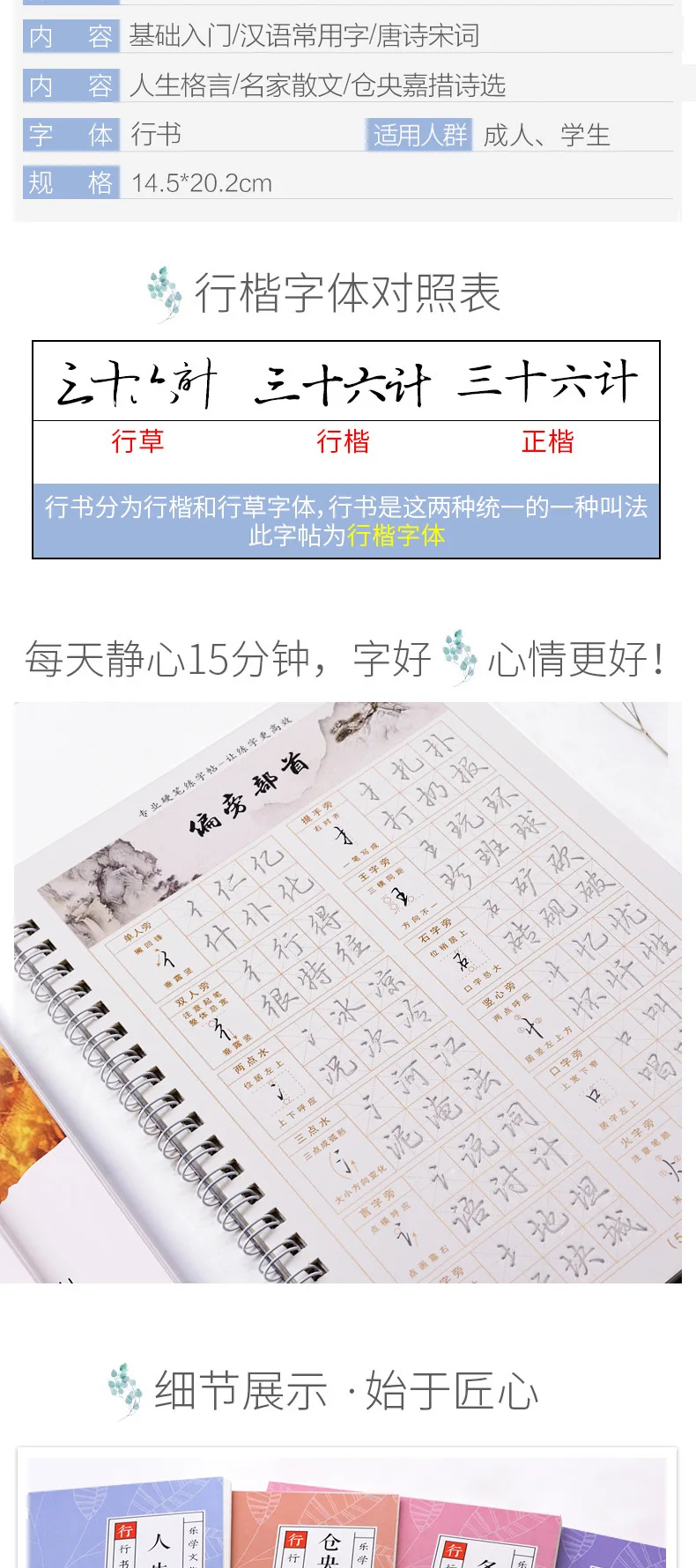 Chinese Characters Pen Calligraphy Practice Small Running Regular Script Chinese Calligraphy Copybook Fountain Pen Copybook