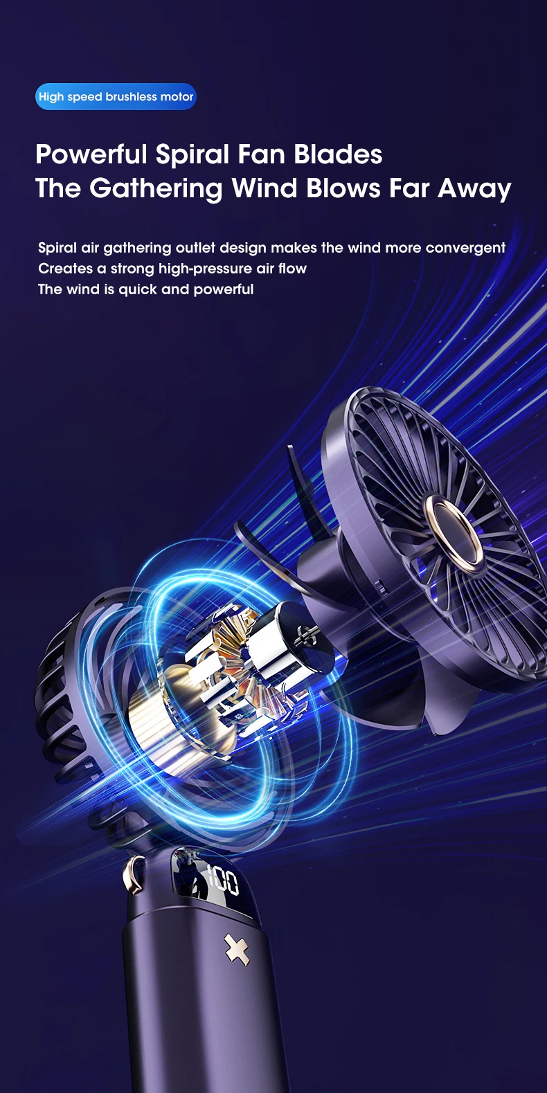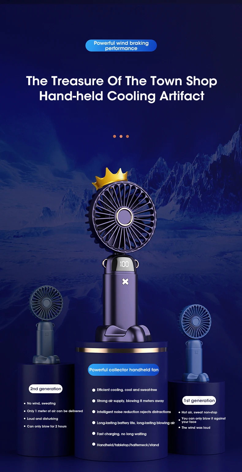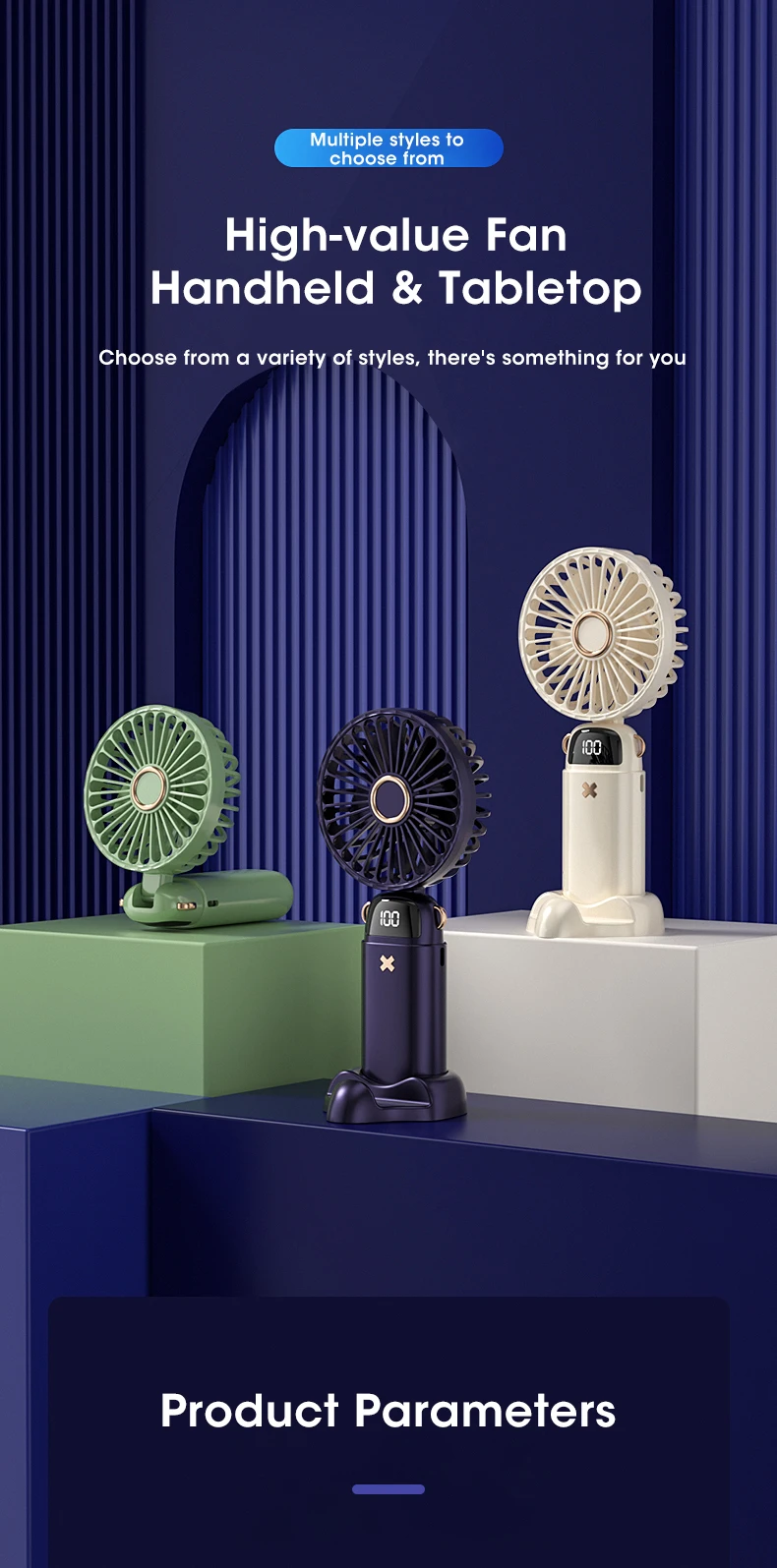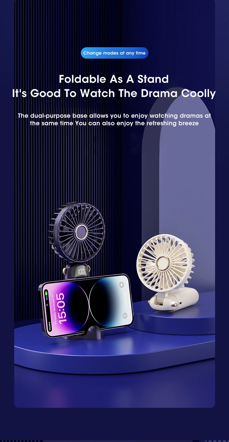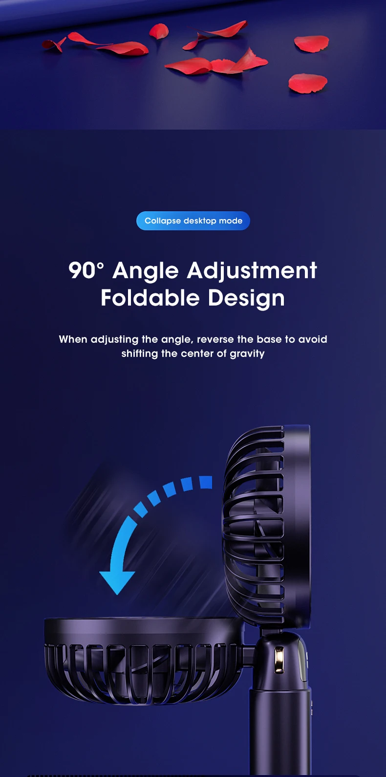 1. Handheld & Desktop: This air cooling fan is both a convenient outdoor handheld fan and a stable hands-free fan indoors on desks and desks.
