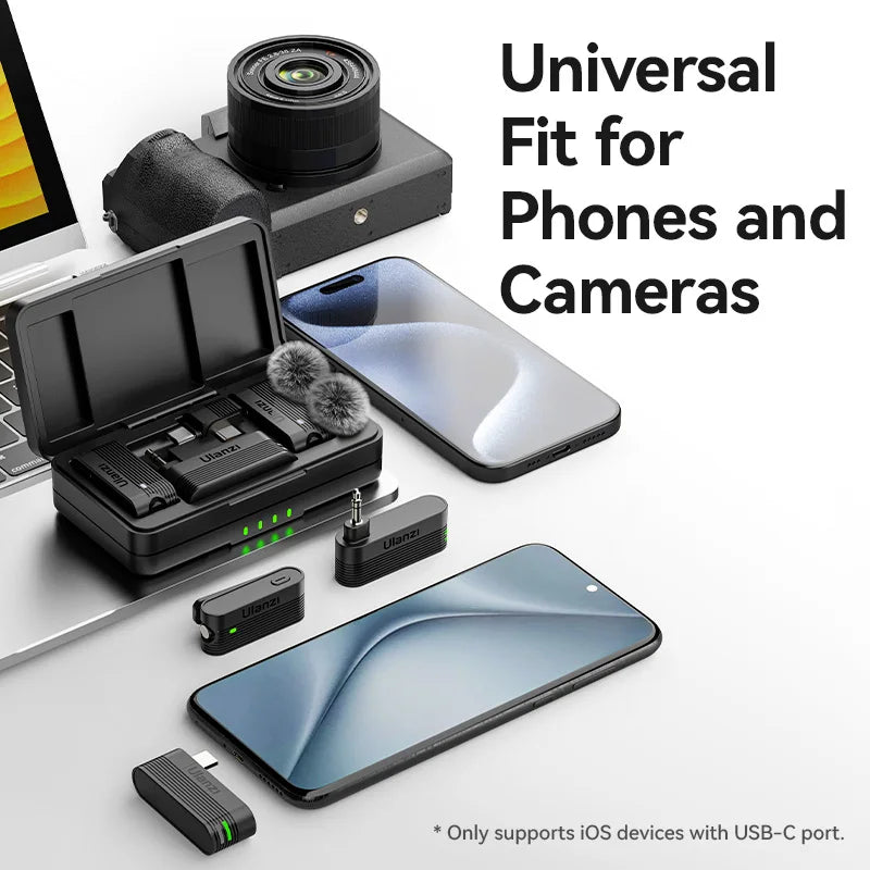 Ulanzi A100 Wireless Lavalier Microphone for Smartphones Cameras 20M Transmission for Street Interviews Vlogging Music Recording