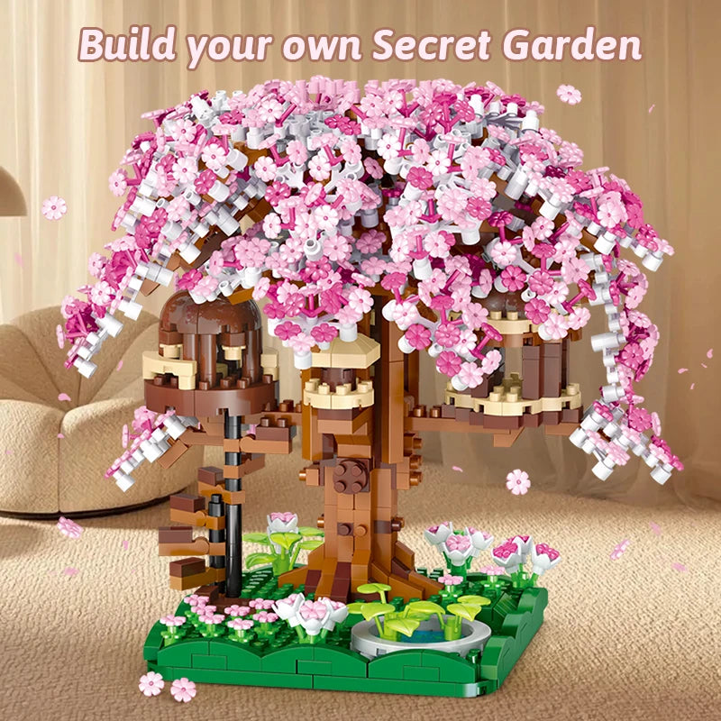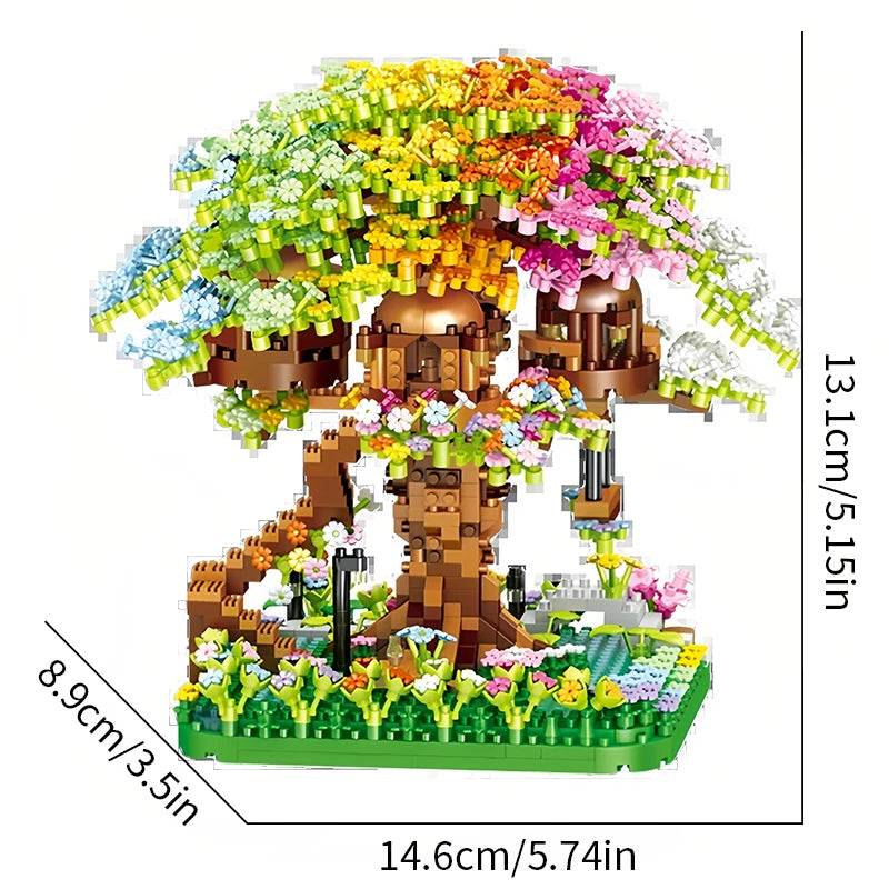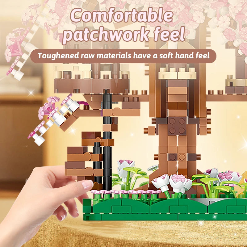 Building block toy pink cherry blossom treehouse rainbow treehouse building block children's parent-child assembly toy