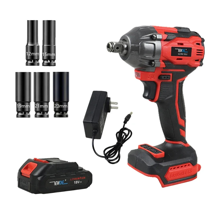 NEWONE 18V cordless Impact Wrench, Impact wrench kit, brushless 400Nm torque impact driver and battery charger