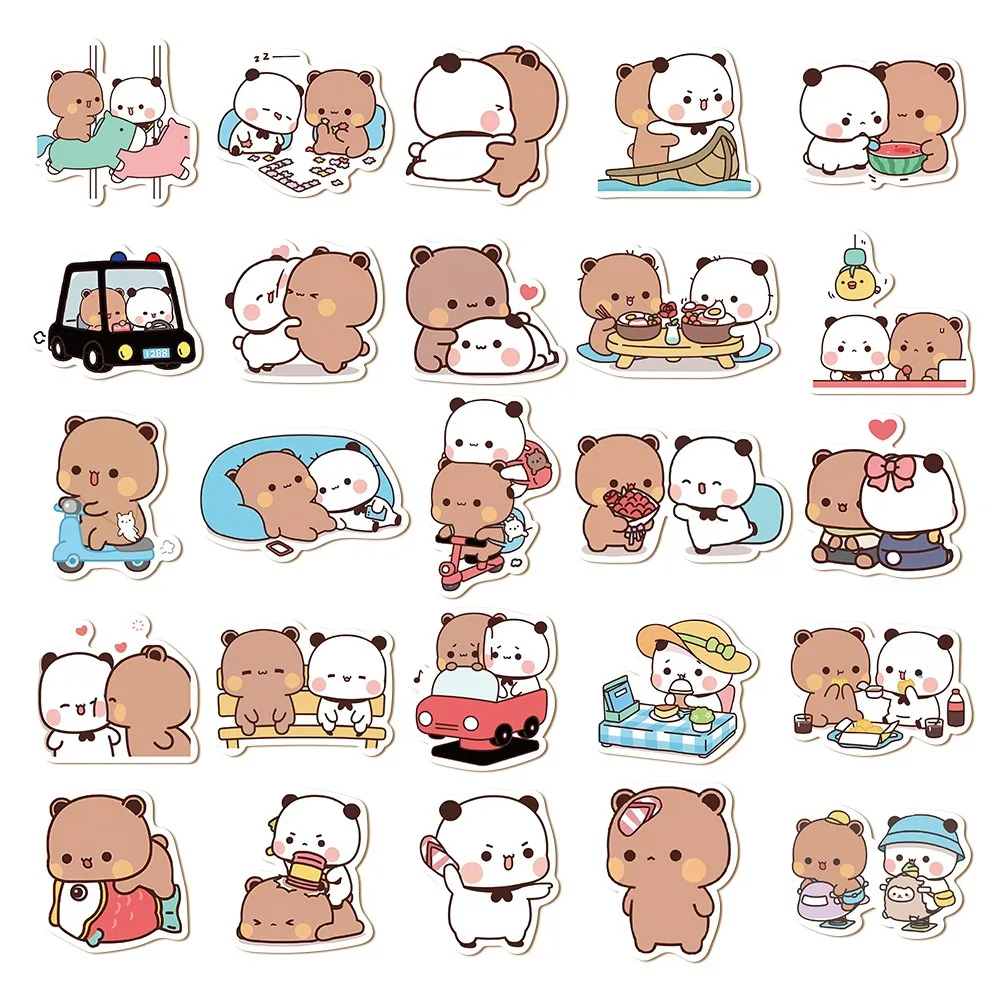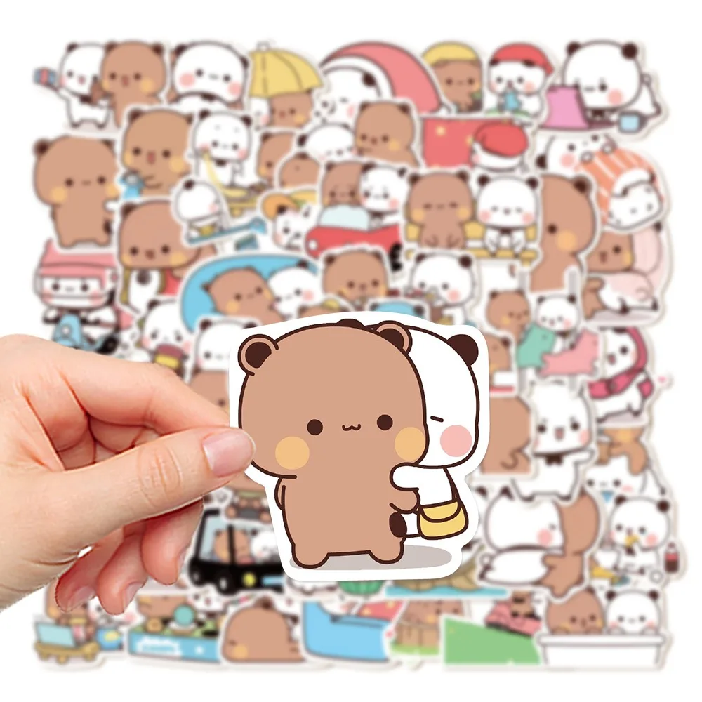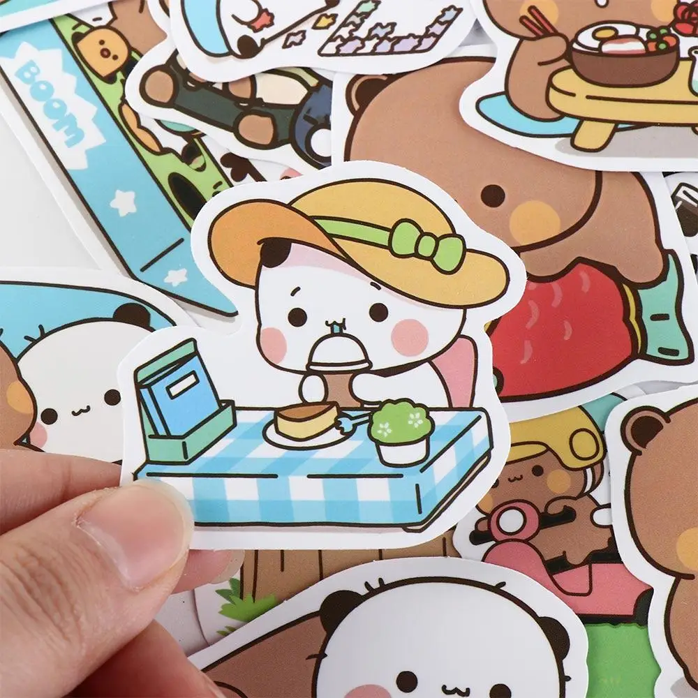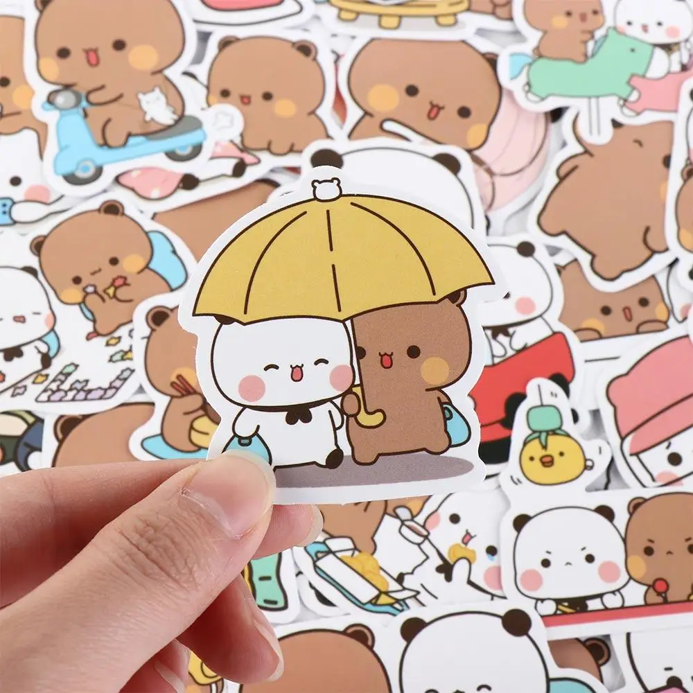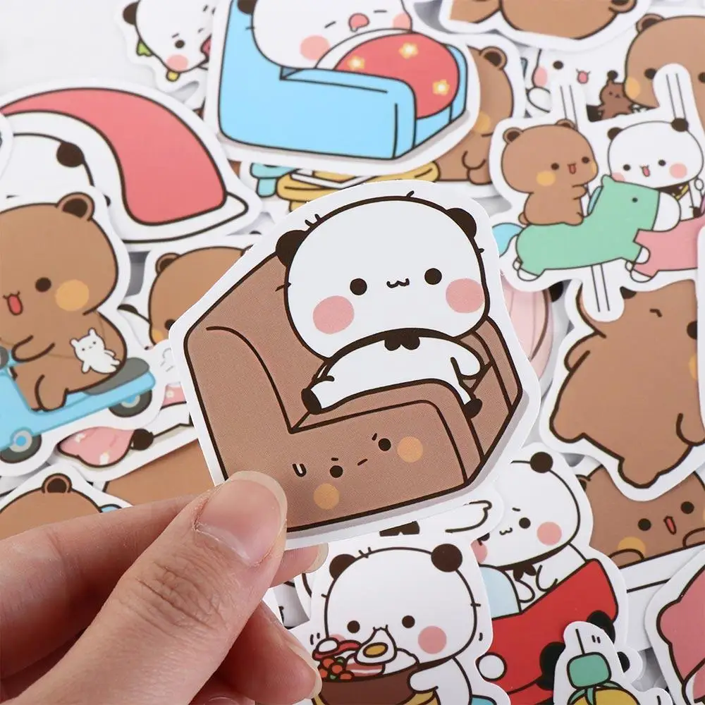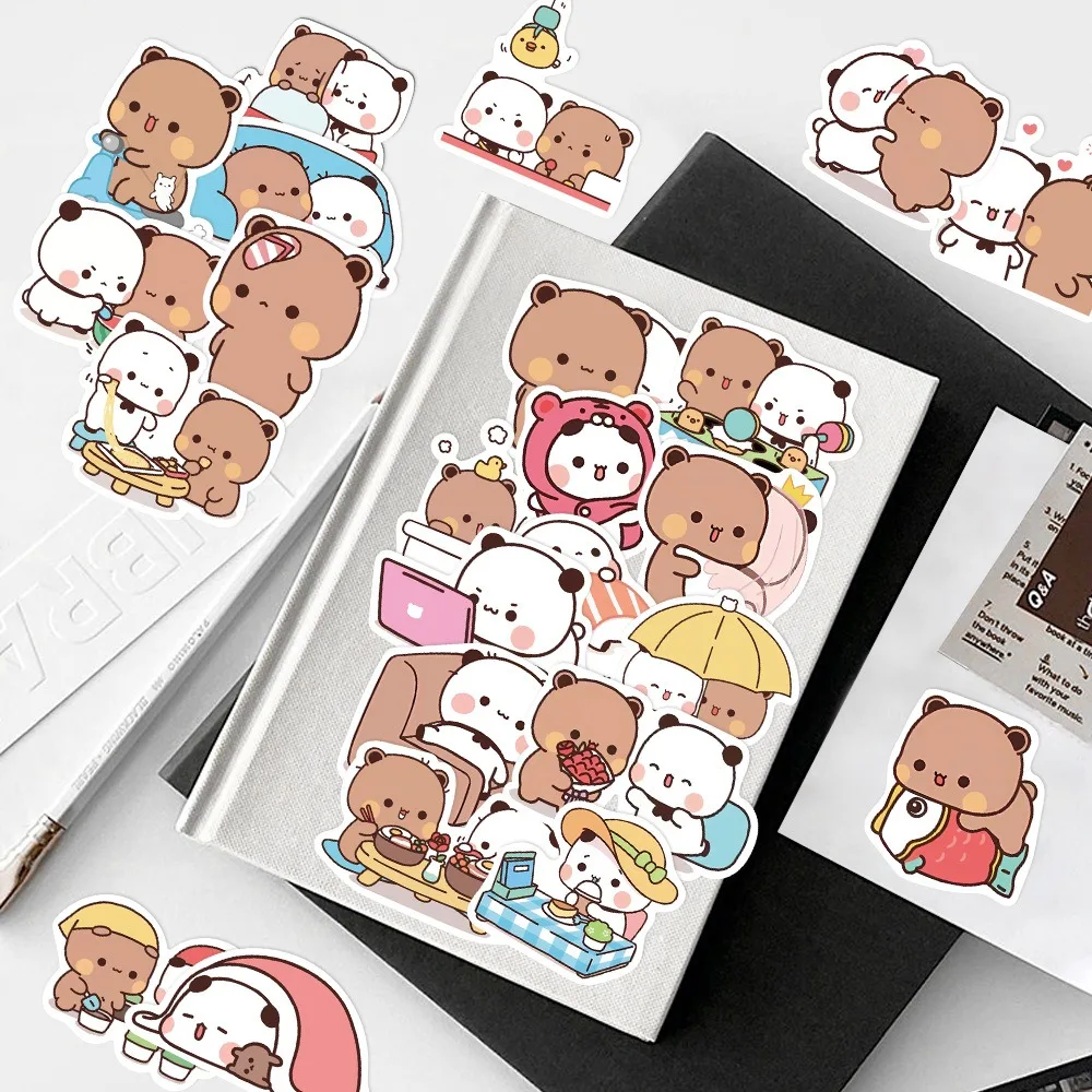 50sheets/set Panda Cute Bear and Panda Stickers Waterproof Bear Bubu Dudu Stickers PVC Cartoon Cartoon Bear and Panda Stickers