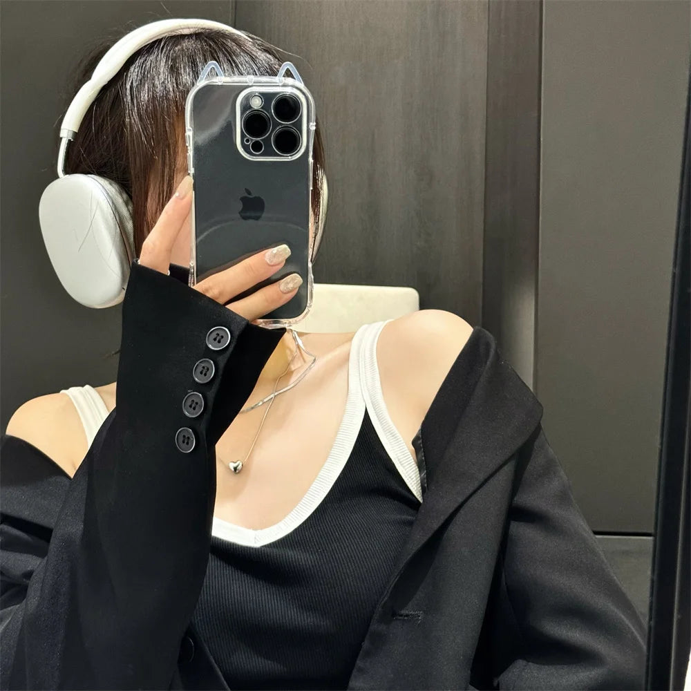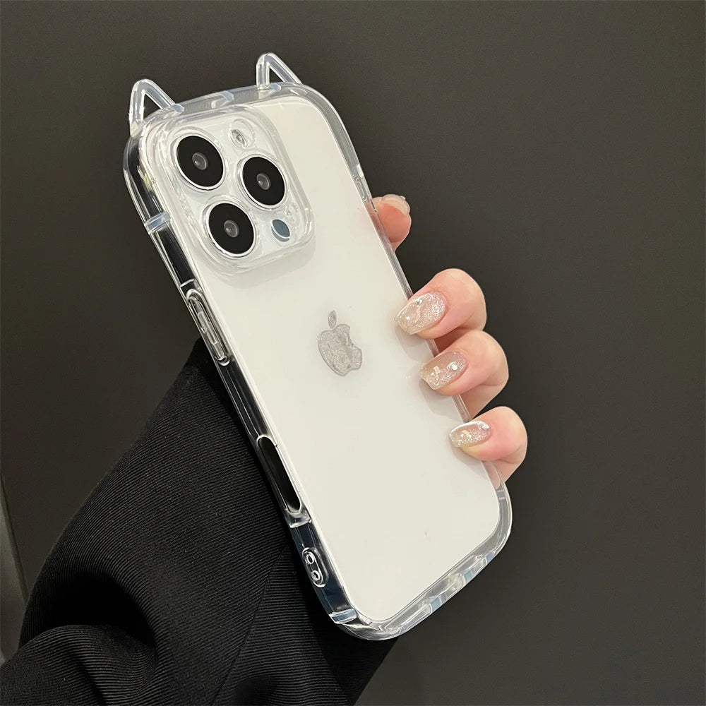 Fashion Clear 3D Cute Cat Ears Phone Case For iPhone 16 15 14 13 12 11 16 Pro Max 7 8 Plus X XR XS MAX Shockproof Soft TPU Cover