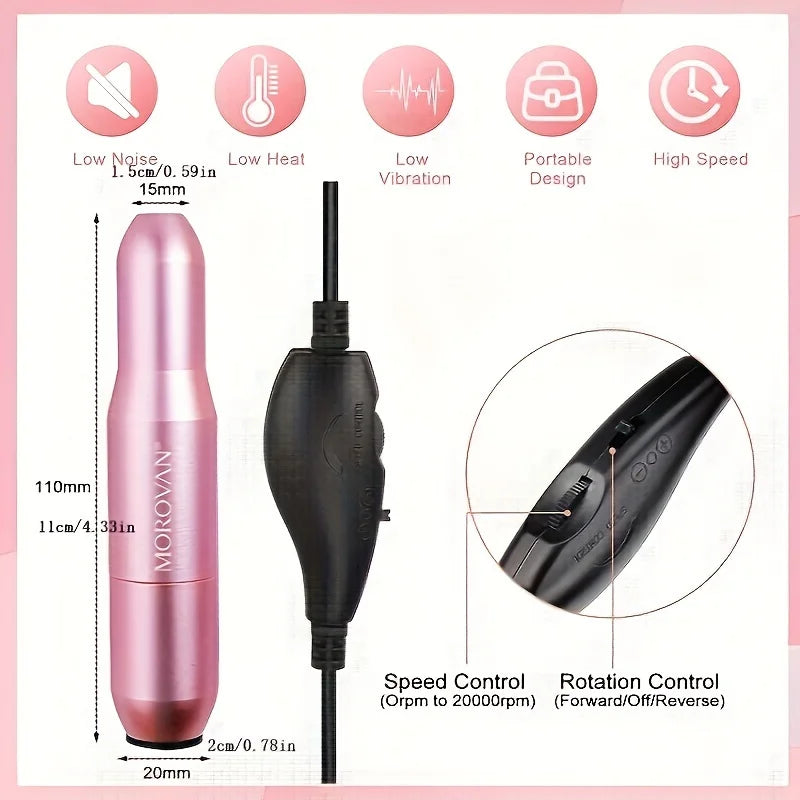 Morovan Professional Electric Nail Drill Acrylic gel Nail Kit - Portable manicure and pedicure kit for shaping and polishing