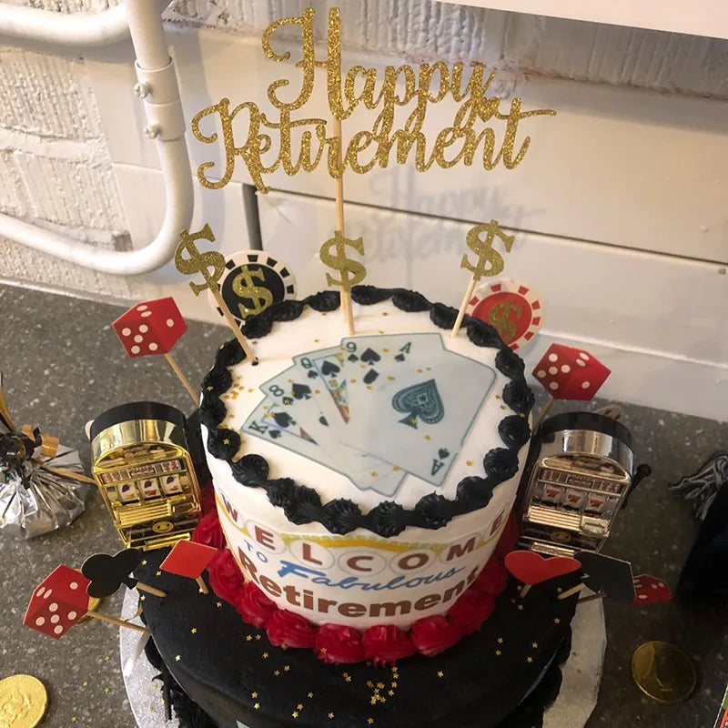 Casino Happy Birthday Cake Toppers Poker Theme Cupcake Topper Gambling Scene Playing Card Picks Adults Birthday Party Supplies