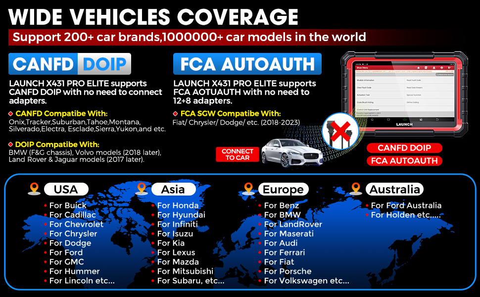 launch x431 pro elite Function 3: CANFD + DOIP + FCA