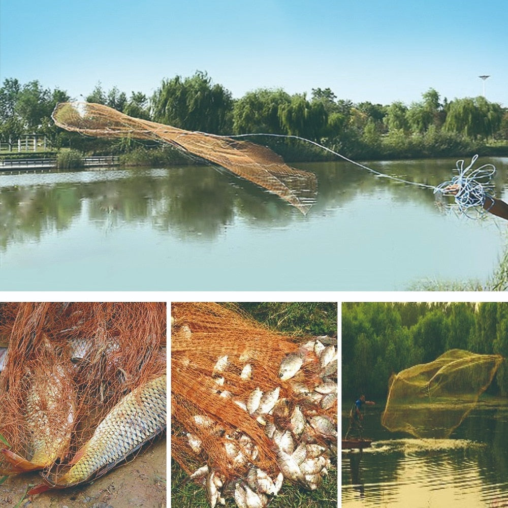 *Nylon monofilament fishing net with sinkers, strong and easy to use.