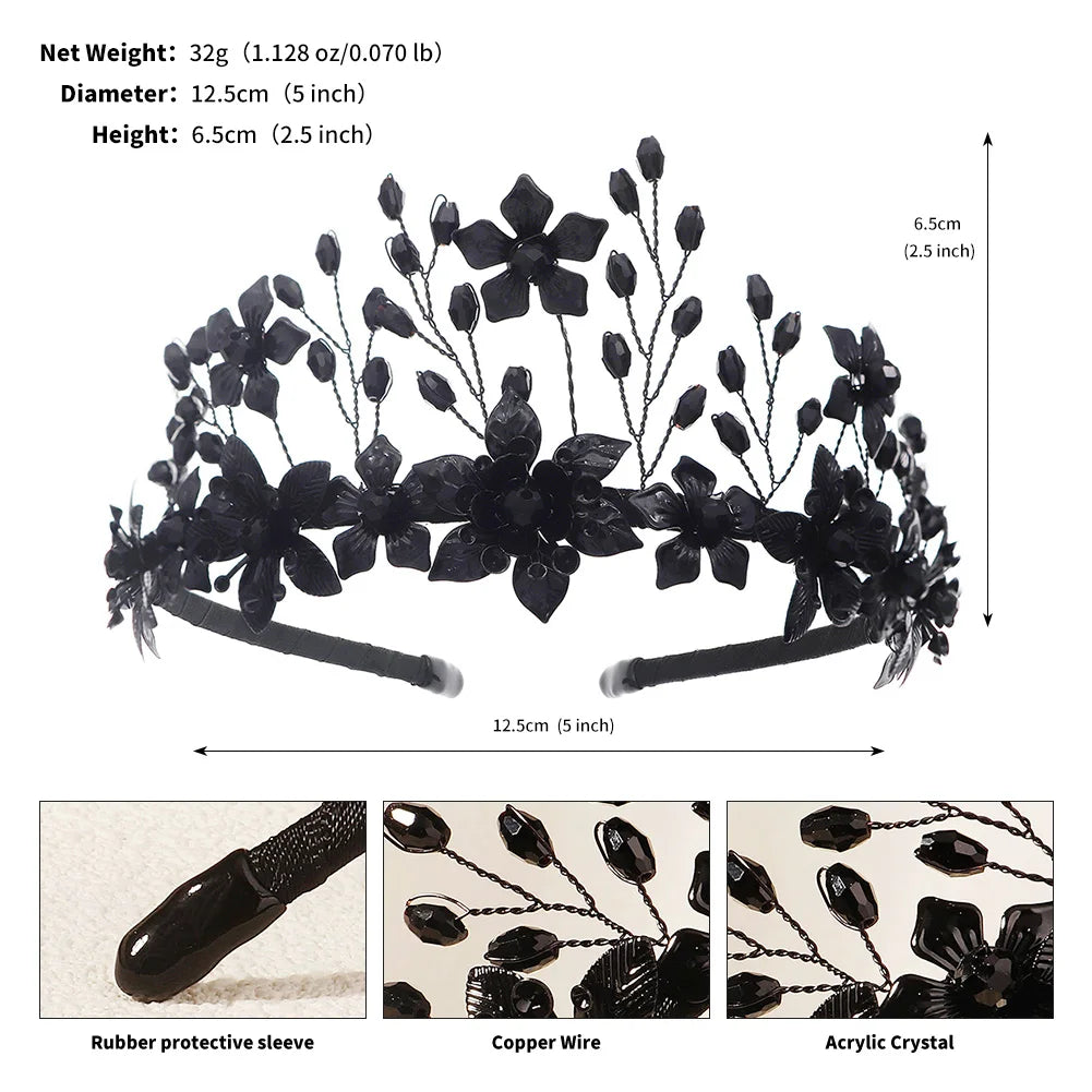 New Black Diablo Halloween Crystal Tiara Witch Headband Hair Accessories Fashion Party Jewelry Crown For Women