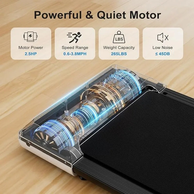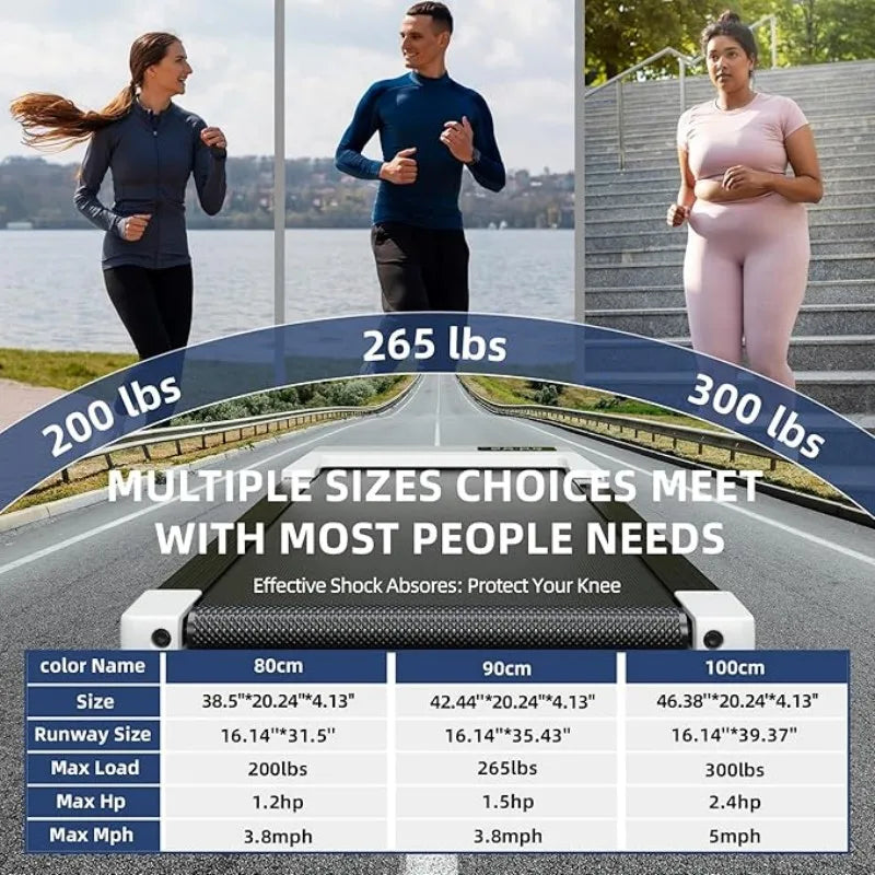 Due to its heavy-duty construction, our walking treadmill can with stand 300 lb.