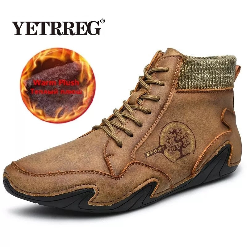 Brand Winter Men Snow Boots High Quality Leather Man Ankle Boots Warm Fur Winter Men Boots Fashion Autumn Men's Shoes Size 38-48
