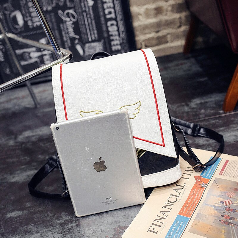 Cartoon Card Captor Sakura Angel Wings Anime Printed PU Women Magical Girl Fashion Cosplay Backpack Students Shoulder School Bag