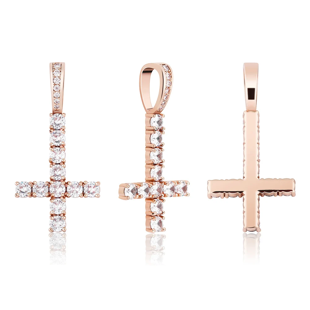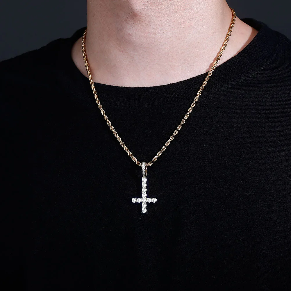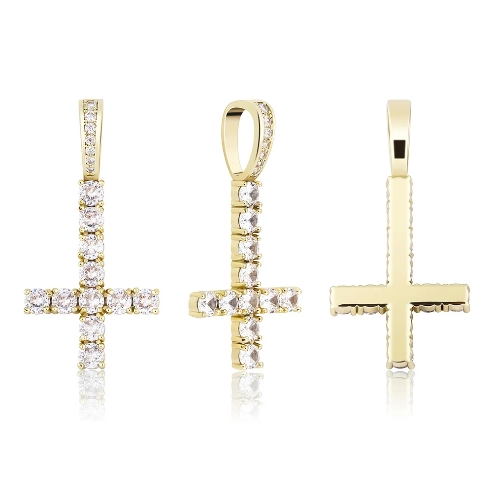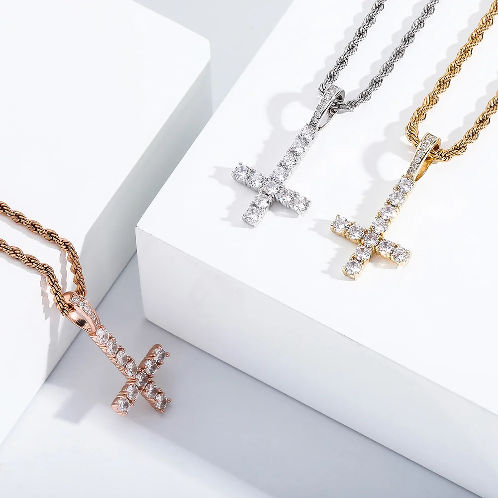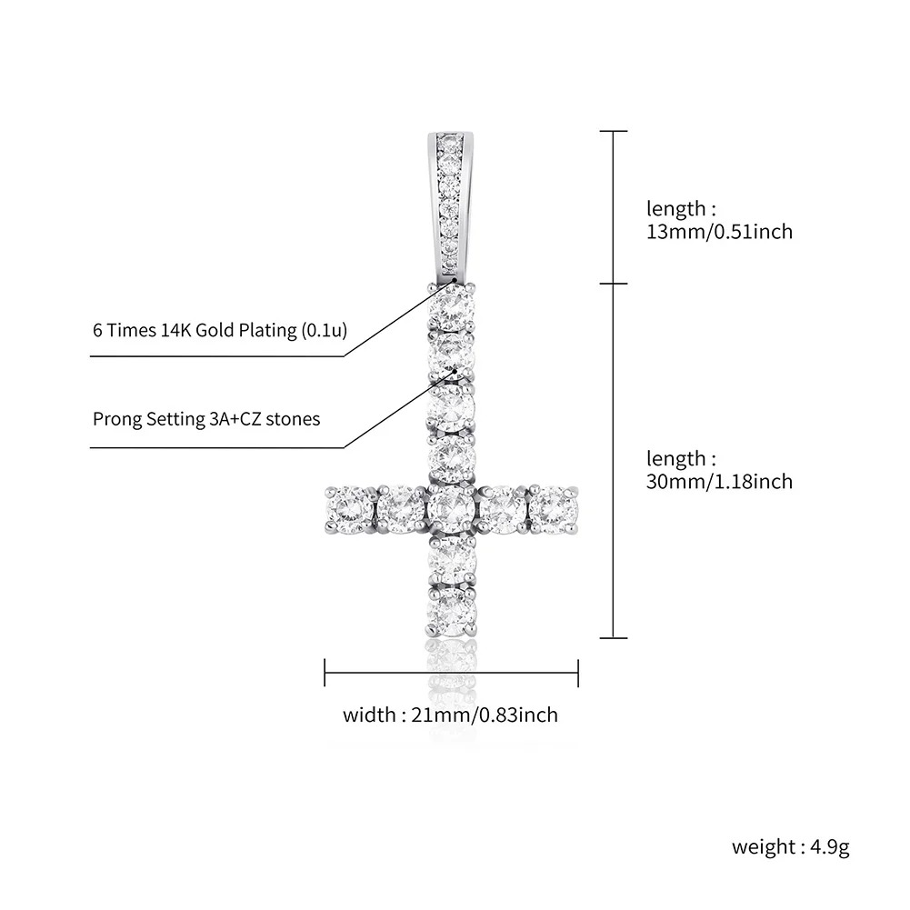 TOPGRILLZ New Upside Down CROSS Pendant High Quality Iced Out Cubic Zirconia Men's Necklace Hip Hop Fashion Jewelry For Gift