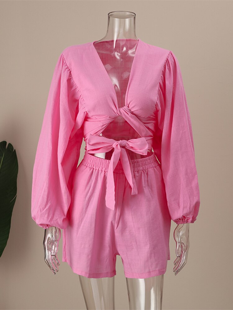 Model Number: Women Casual Solid Shirts And Shorts Set