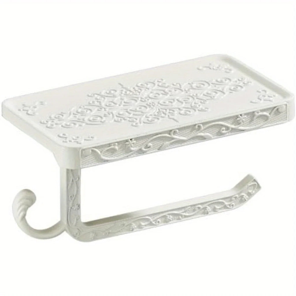 【Spacious Shelf】: This toilet paper holder comes with a spacious shelf that provides ample storage for various bathroom essentials, keeping your space organized and clutter-free.