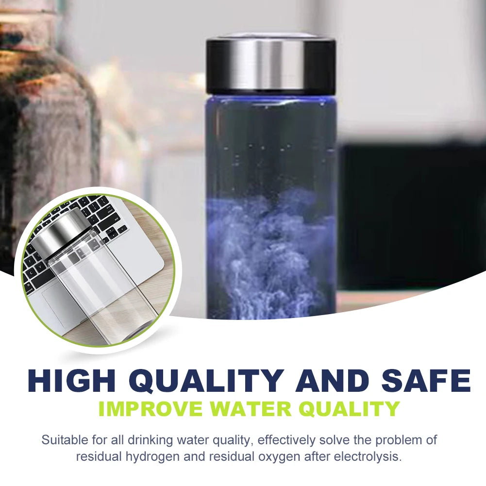 2.High-Quality Safety Standards: Crafted with high borosilicate glass, our hydrogen water generator ensures transparency, safety, and health. The use of nano-grade titanium platinum materials guarantees longevity and high hydrogen concentration. Drinking hydrogen-rich water can lower blood lipids, improve sleep quality, and purify the blood. With a large 420ml capacity, it fulfills the hydration needs of the entire family.