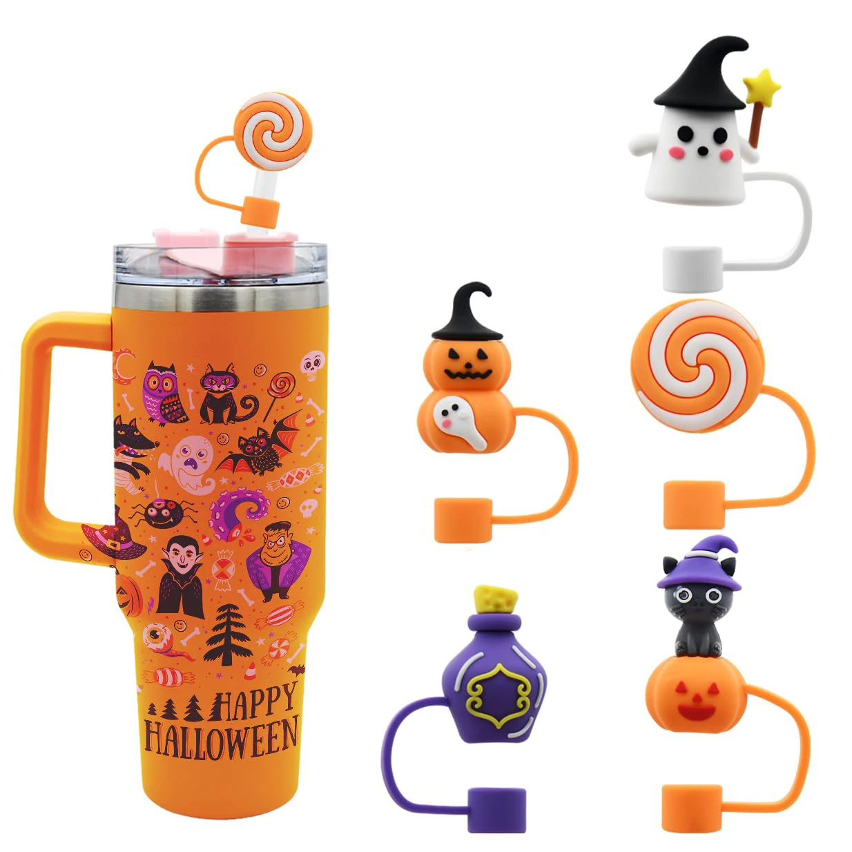 Halloween Straw Cover Cap for Stanley Cup,Cute Ghost Halloween Straw Topper,Portable Drinking Straws Topper Covers,Reusable Straw Tips Lids Cup Accessories for Tumble Water Bottle