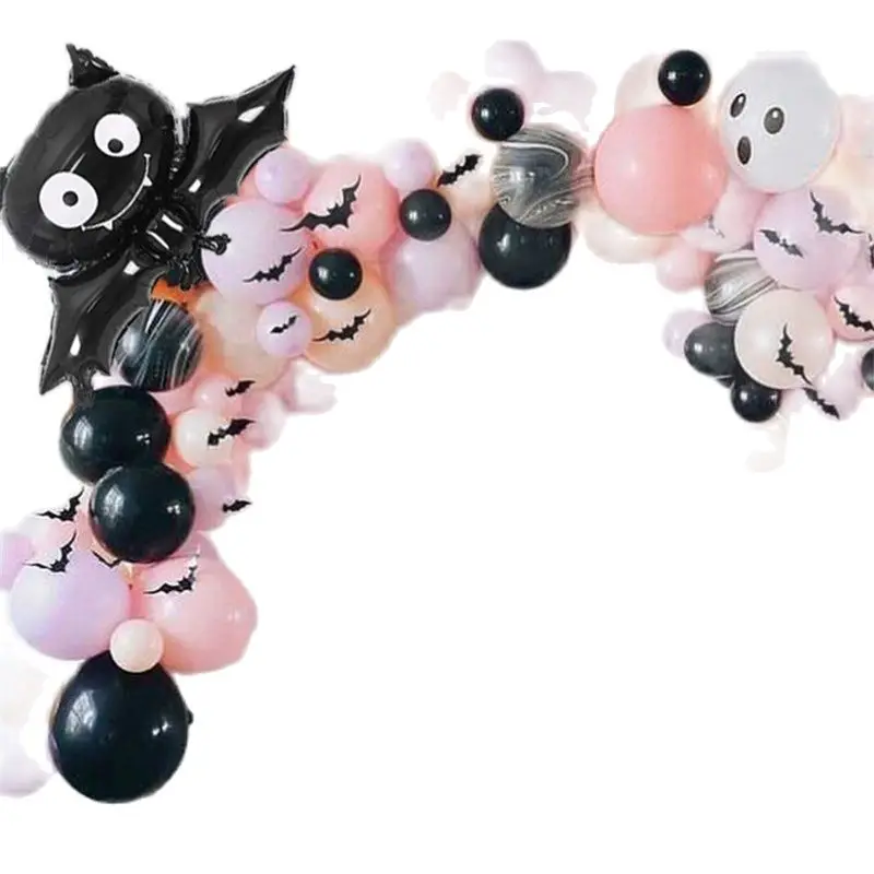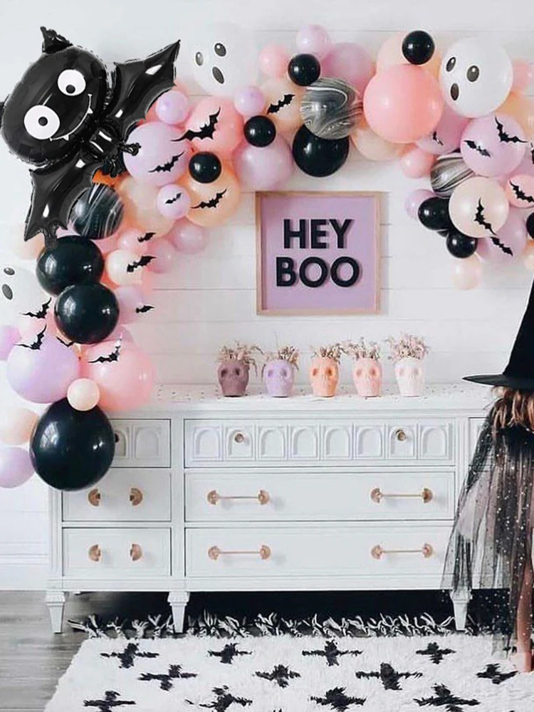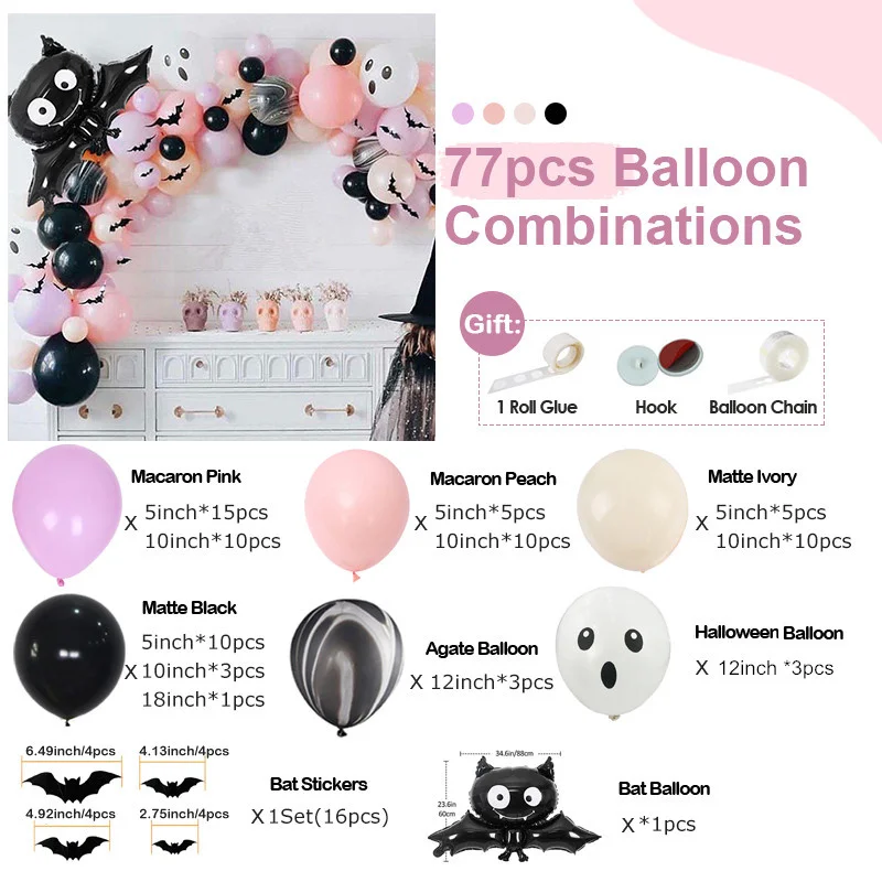 77pcs Pink Halloween Balloons Garland Arch Kit Bat Balloon Spooky Decorations for Kids Baby Shower Birthday Party Baptism Decor