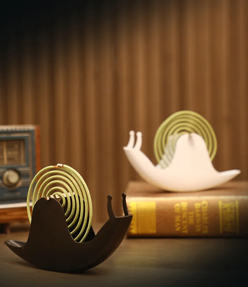 Cute Snail Shape Mosquito Coil Incense Holder Shelf Retro Unique Wrought Iron Metal Stand Ornament for Home Bedroom Decoration