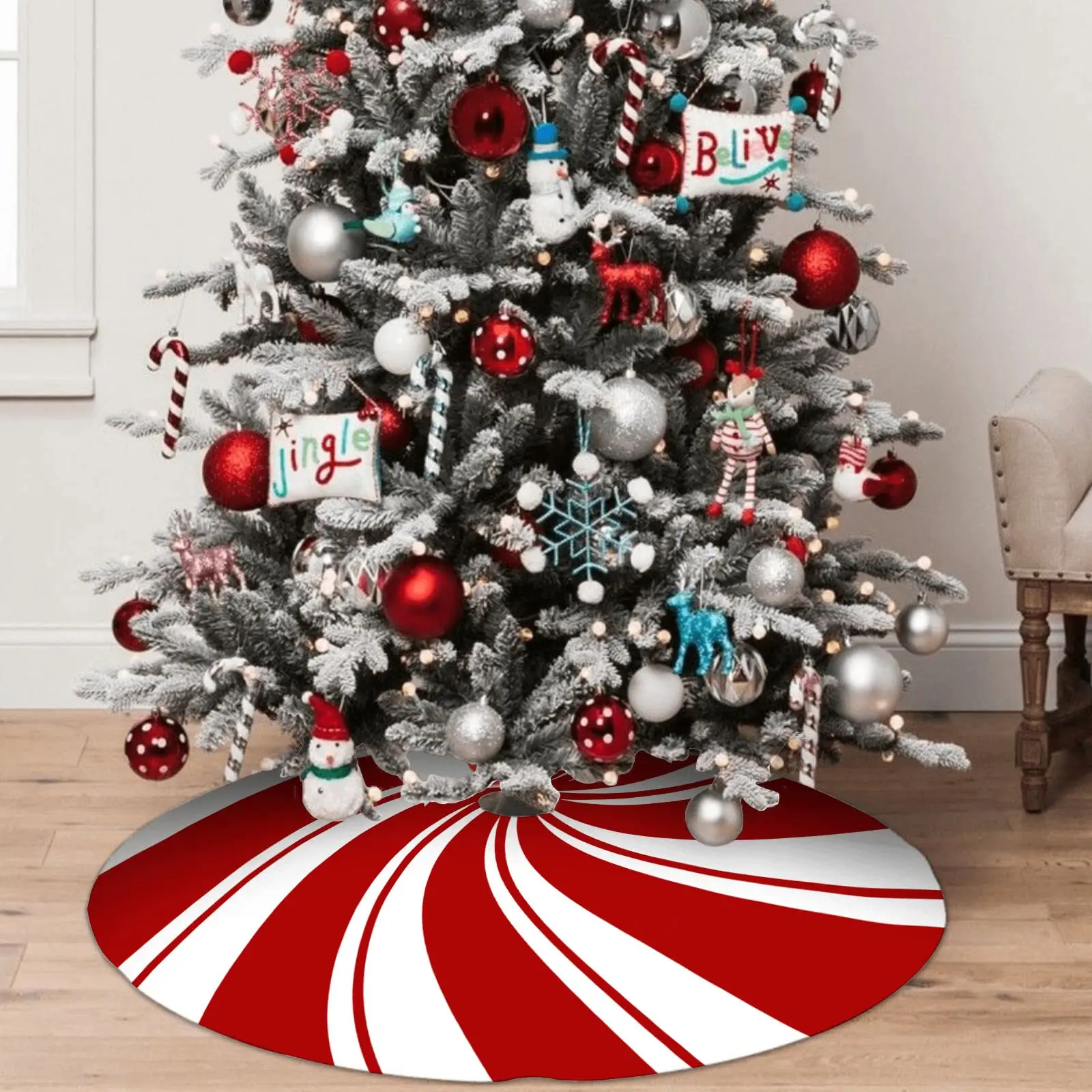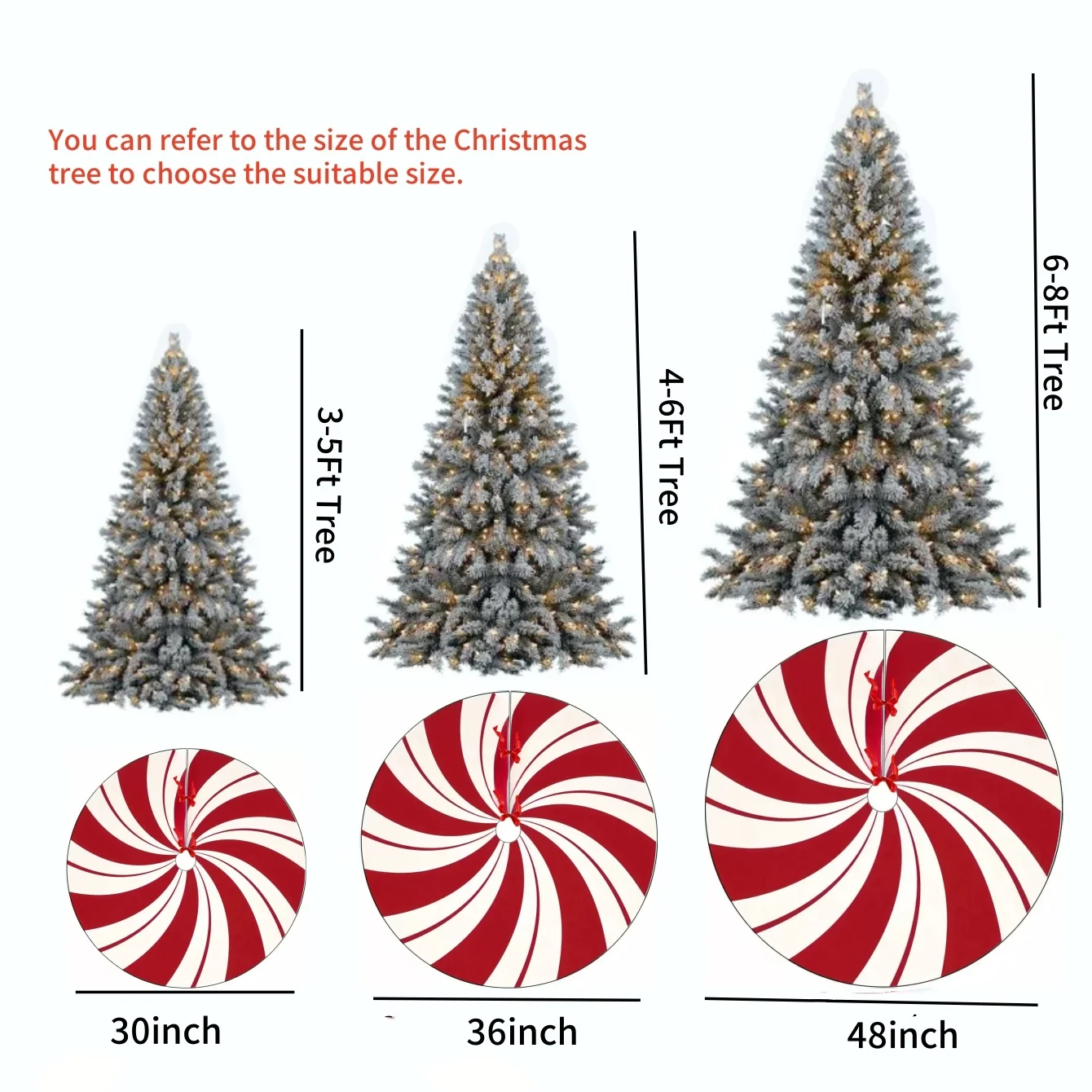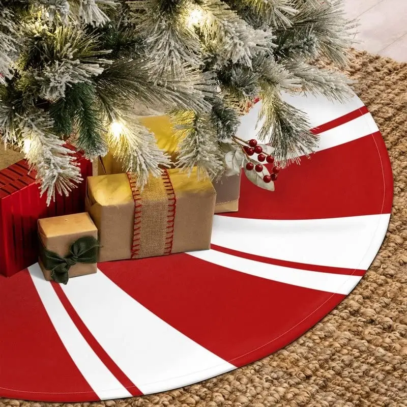 30/36/48 Inch Red Swirl Christmas Tree Skirt Sweet Candy Cane Navidad Tree Skirt Base Mat Ornament New Year Christmas Home Decor