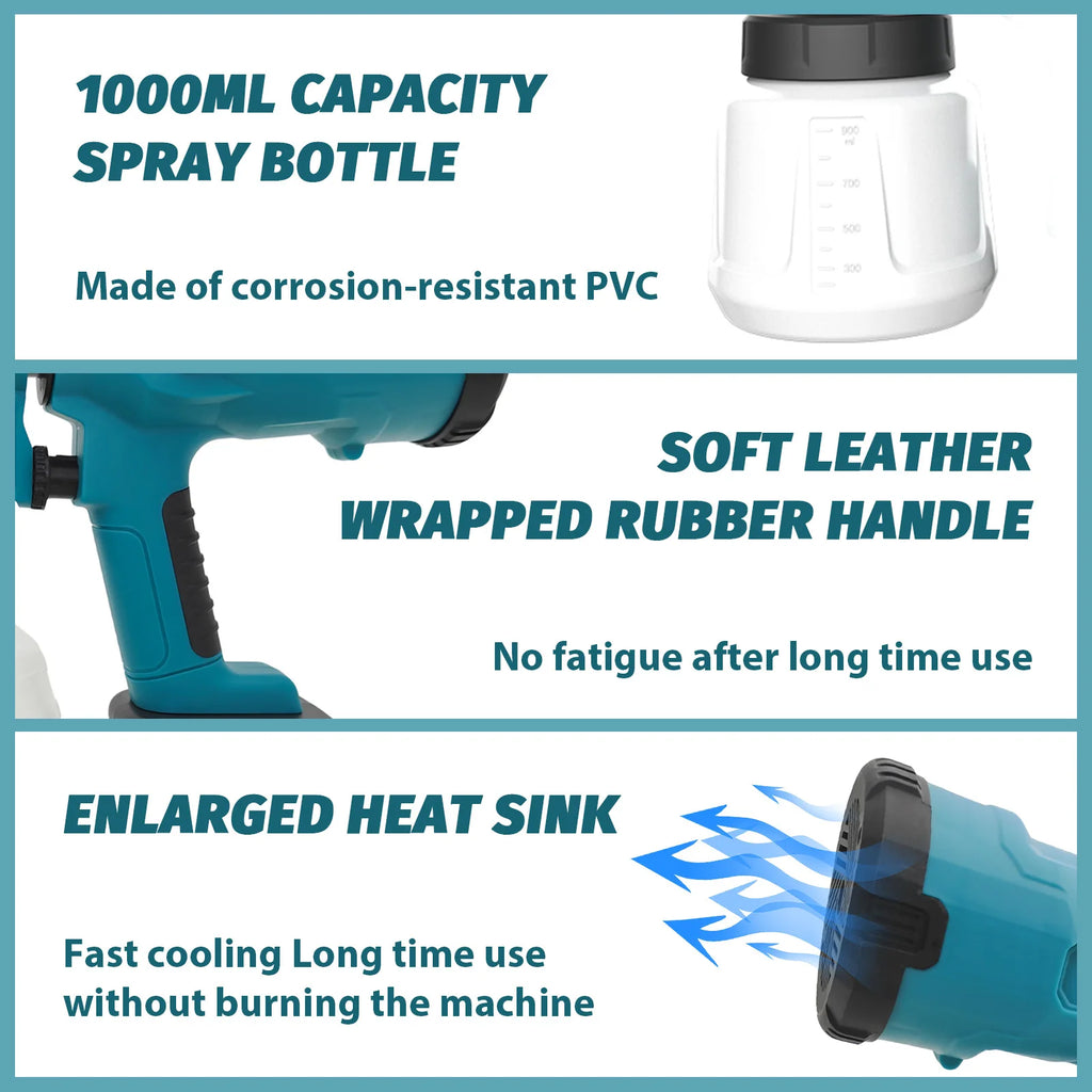 Cordless Electric Paint Spray Gun with 2 Battery Portable Sprayer Replace for Makita Battery 18V&1000ML