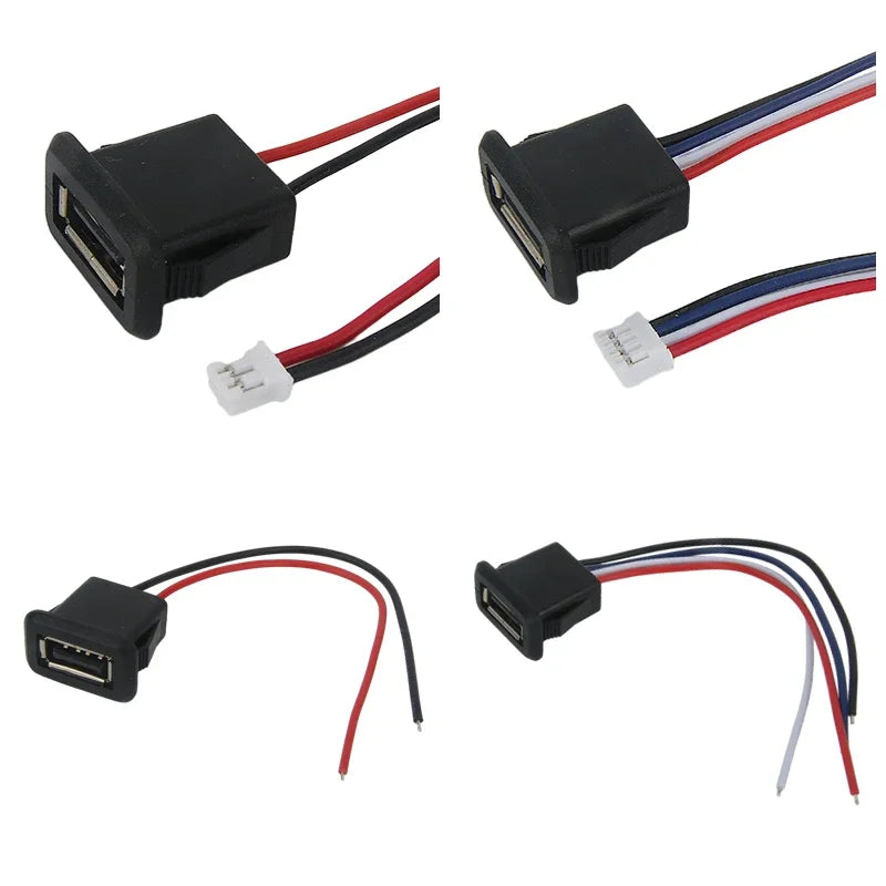 1-10pcs 2 Pin 4 Pin USB 2.0 Female Power Jack 2P 4P USB 2.0 Charging Port Connector Data Interface with Cable USB Charger Socket