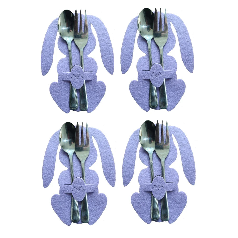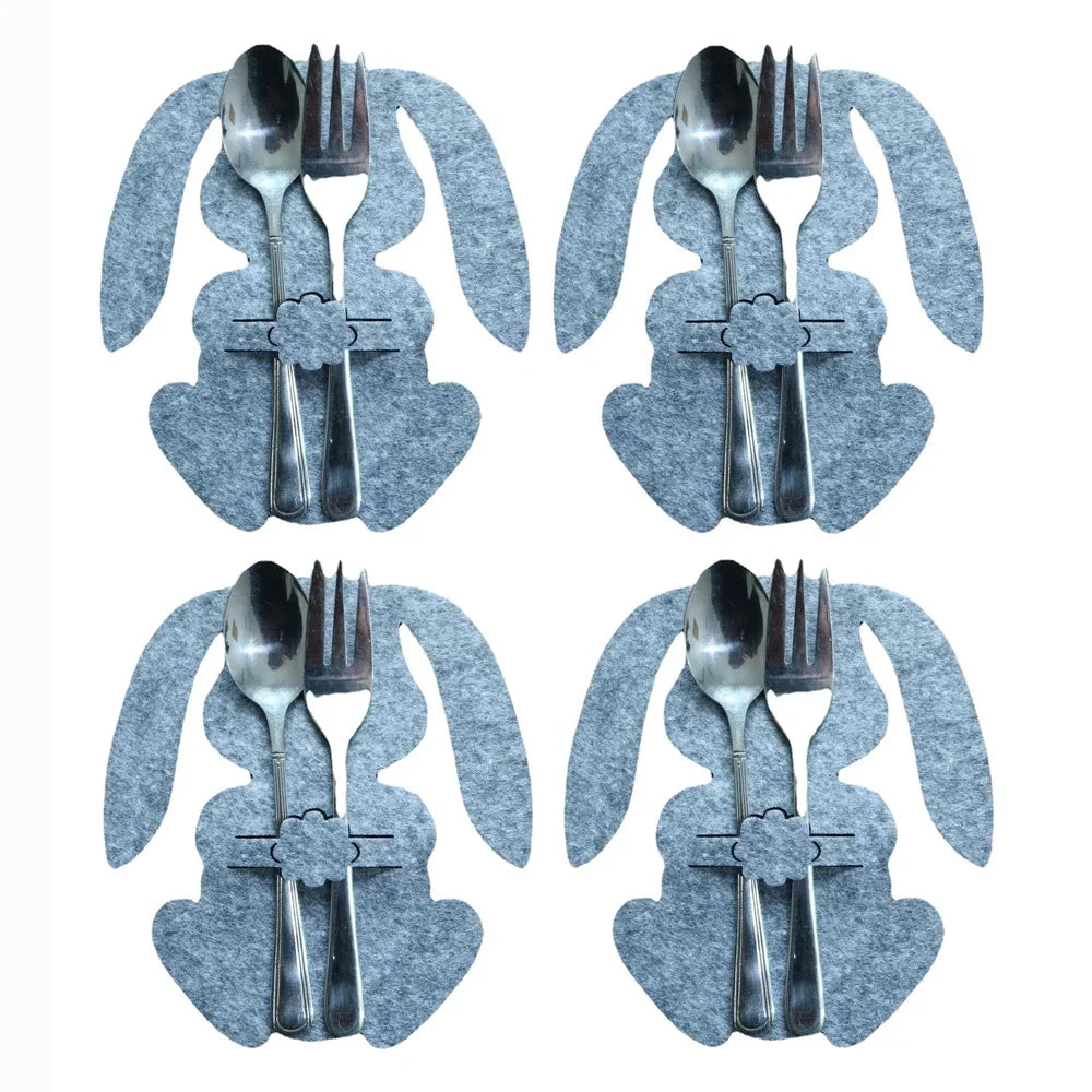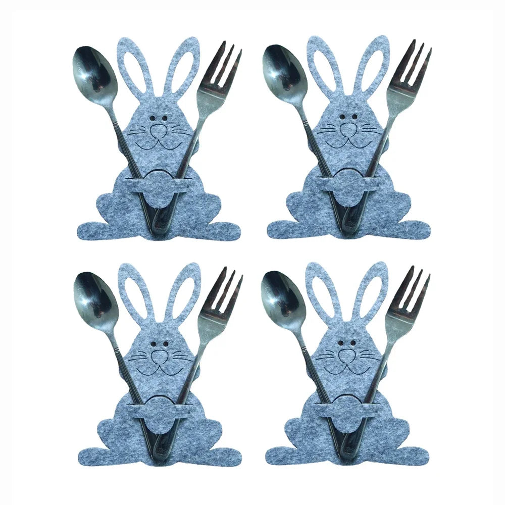 4Pcs/set Easter Knife Fork Bags Non-woven Cartoon Sheep Easter Eggs Rabbit Cutlery Holder Bag Tableware Organizer Easter Decorations