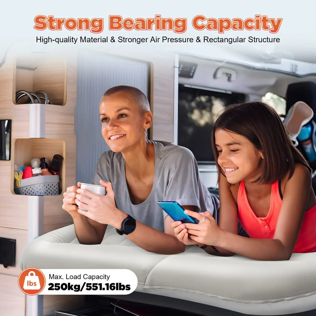 ●Whether You Are in a Car, Outdoors or at Home, This Double-sided Air Mattress Can Be Used As a Resting Bed. It has a Super Load-bearing Capacity of 650 Pounds and Can Accommodation 2-3 Adults.