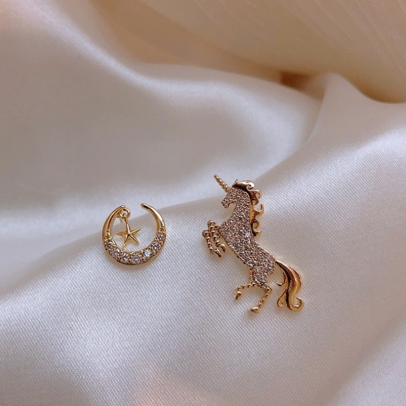 New Elegant Unicorn Stud Earrings Women Rhinestone Cartoon Korean Jewelry Animal Ear Stud
