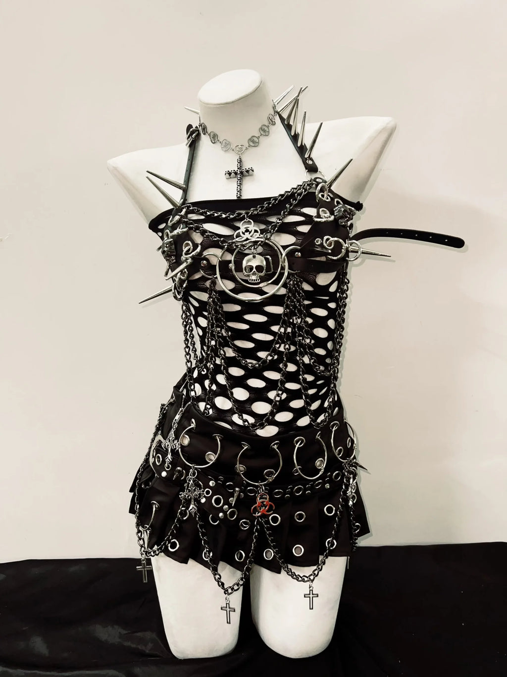 Rivets Tank Tops sexy top y2k clothes y2k crop top gothic clothes Gothic Tank Tops Punk Tops y2k fashion Skull top vintage Tops