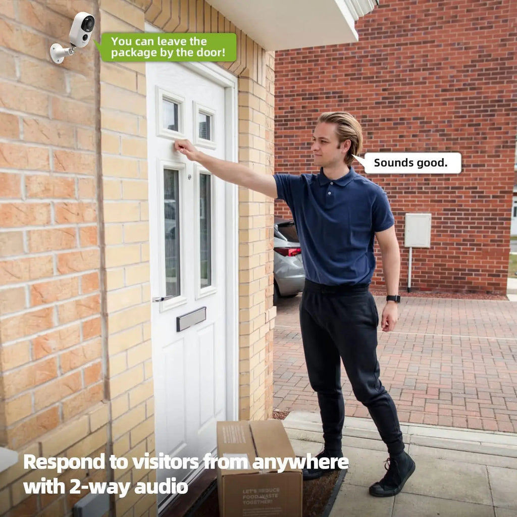 Built-in noise-canceling microphones and high-definition speakers support real-time two-way audio-only calls. You can communicate with anyone through the mobile app, or warn unwanted guests, with optional spotlight and siren alarms to repel thieves. By scanning the QR code, you can share access to the webcam with your family or friends to monitor home security together.