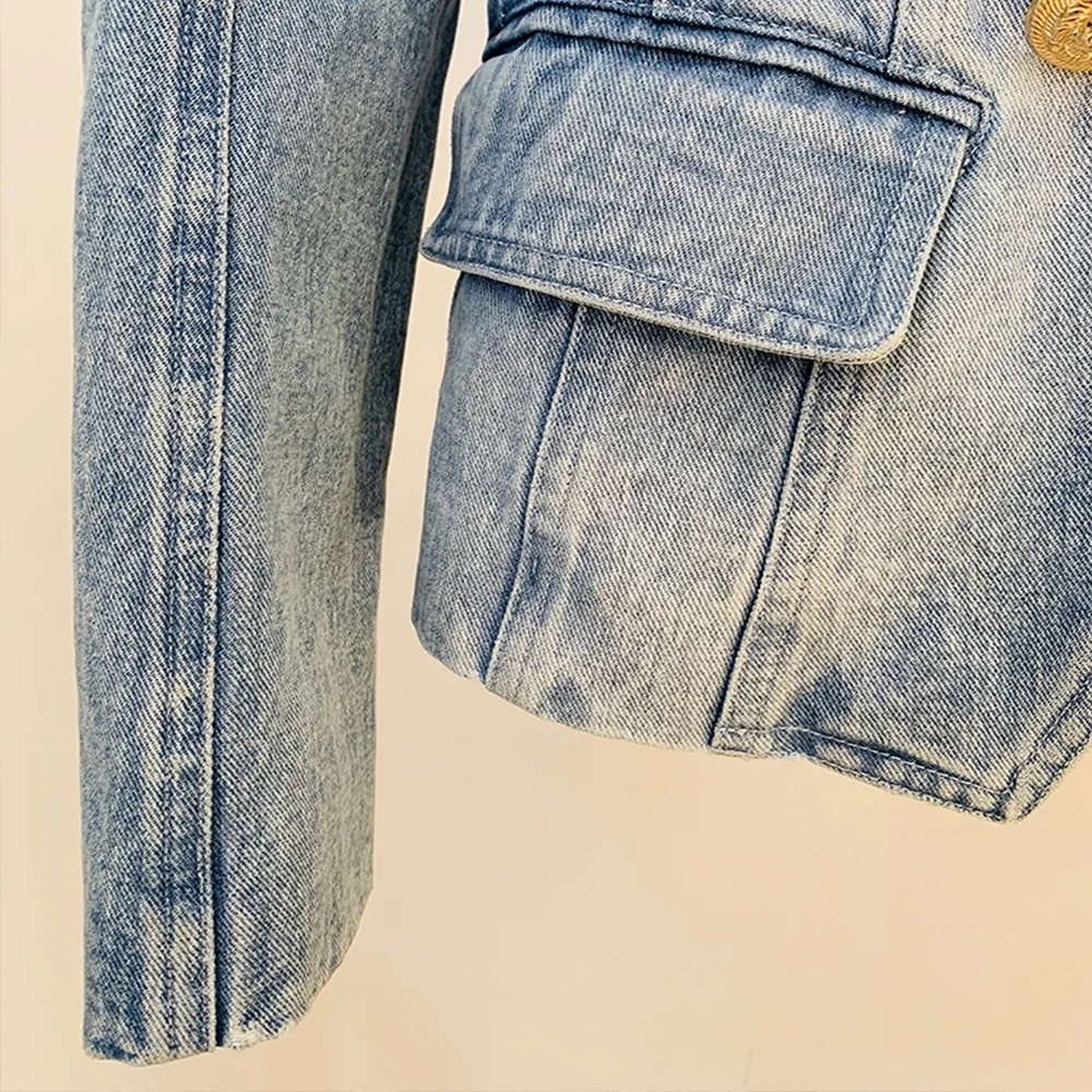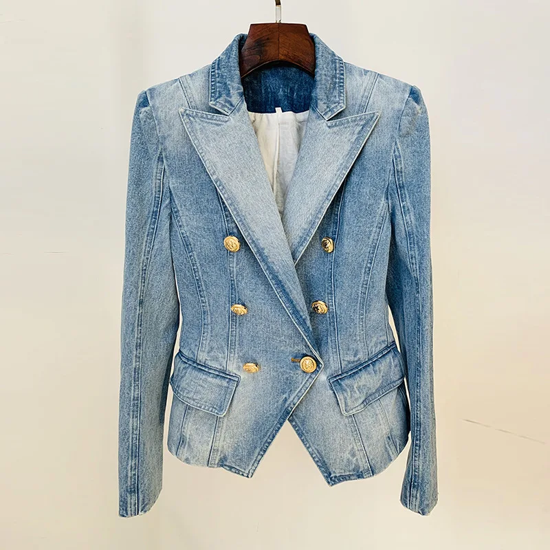Top Quality Women Washed Denim Jeans Outwear Jackets Double Breasted Slim Short Female Casual Blazer