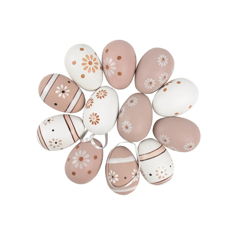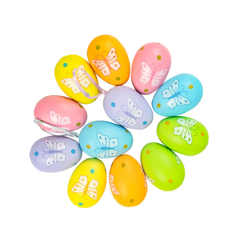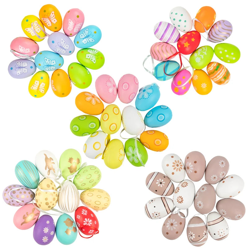 12pcs Plastic Painted Easter Eggs Hanging Ornament DIY Easter Egg Pendant For Home tree Decoration Happy Easter Party Kids gift