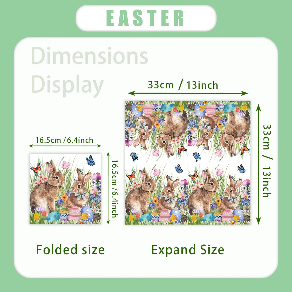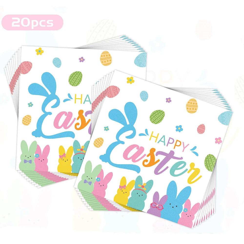 20pcs Easter Bunny Paper Napkins Disposable Napkins Easter Theme Birthday Party Dessert Napkins Spring Easter Party Decorations